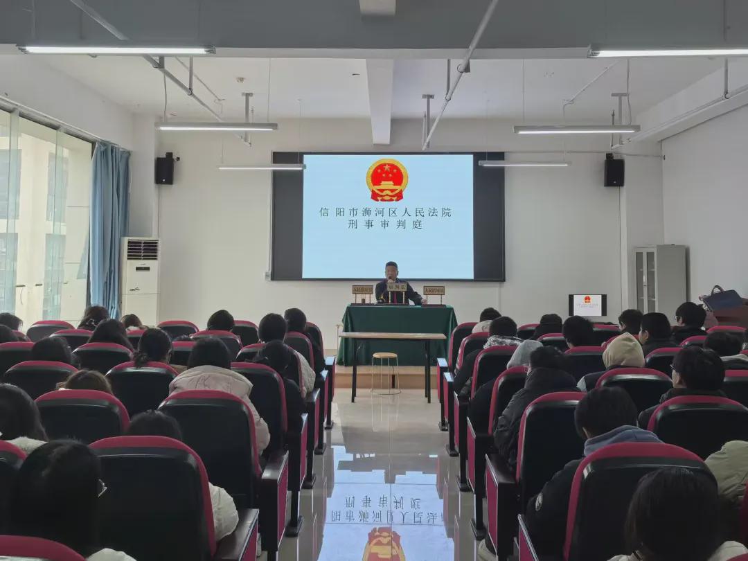 12月24日上午,新世纪职业学院的一间教室有些不同寻常。浉河区人民法院刑事审判庭曾斌法官带领团队来到这里,开展了一场巡回审判。100多名师生坐在旁听席,“零距离”接触了真实的庭审现场。
