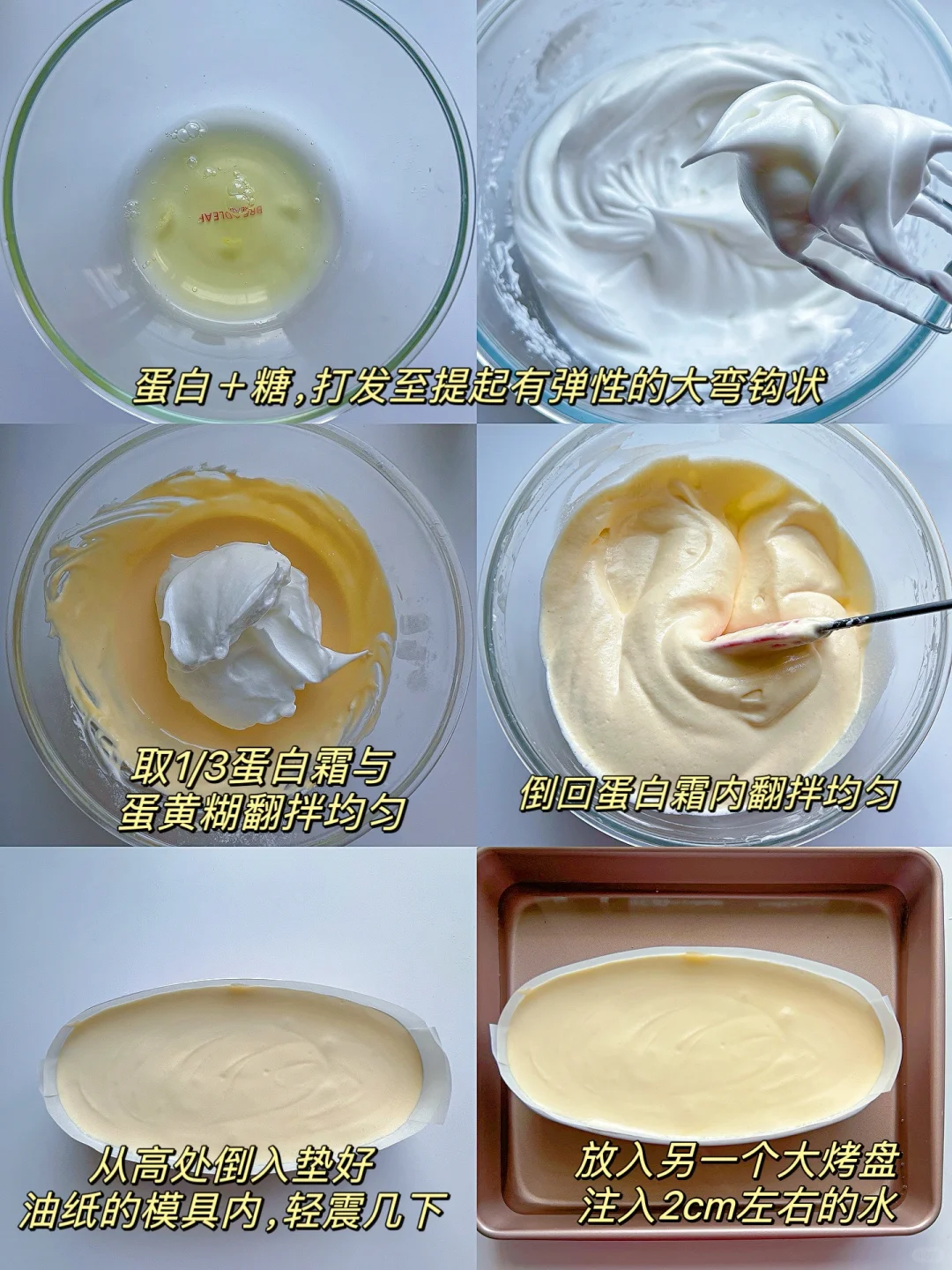 3️⃣蛋白霜打到提起打蛋器有可以晃动的大弯钩就可以了,太硬容易开裂
