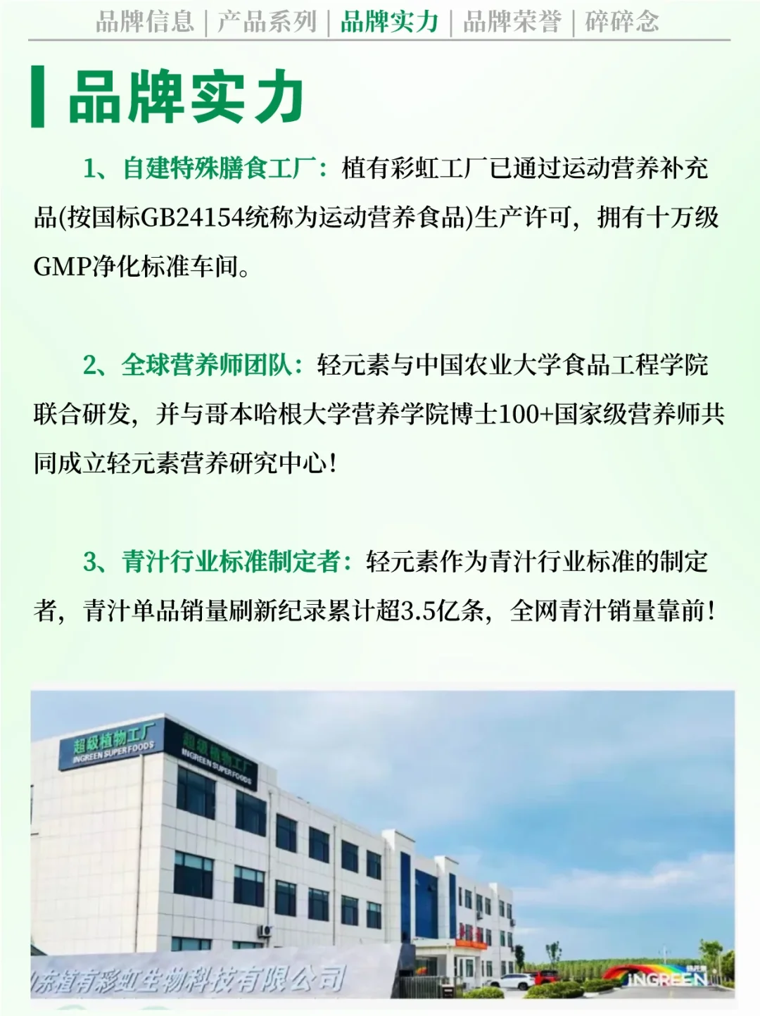 🌈 品牌简介:轻元素,山东植见食品科技有限公司旗下品牌,专注超级植物营养领域10年,通过探索高密度与高活性的超级植物营养,平衡身体机能,提供高膳食纤维等绿色植物膳食营养和肠道健康解决方案
