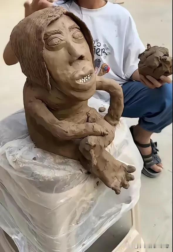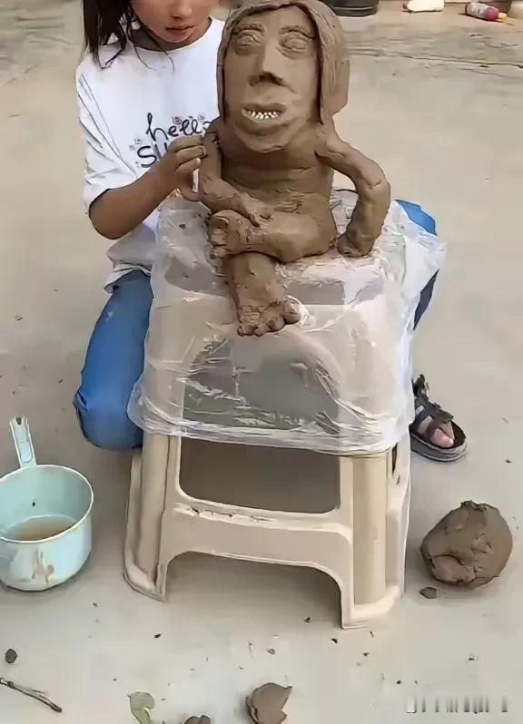 妈妈当女儿的模特。女儿创作的泥雕,作品不说有多像吧,但绝对是抓到了精髓,闺女的确有天赋,不服不行!我觉得这小女孩的作品比那个央美毕业展里的不知道强多少倍![捂脸]