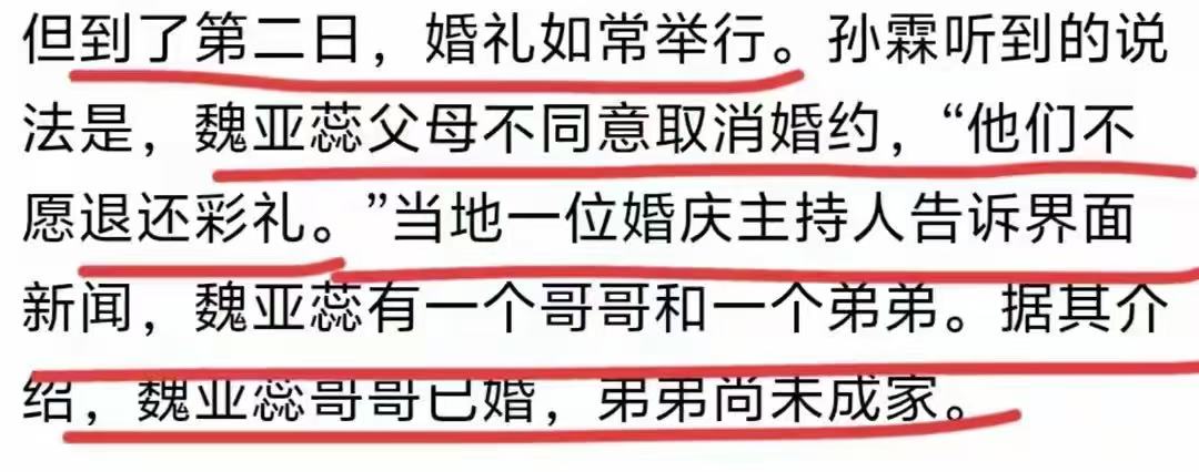 为啥说新郎也不完全无辜,因为他也知道小魏不愿意,却一厢情愿认为,只要结了婚,就是自己家的人。
