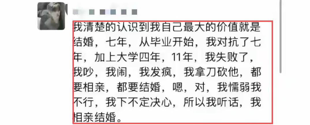 她28岁,被催婚了11年,过程中,她吵过,闹过,发过疯,坚持到现在,她心中的压力已经到了临界点。