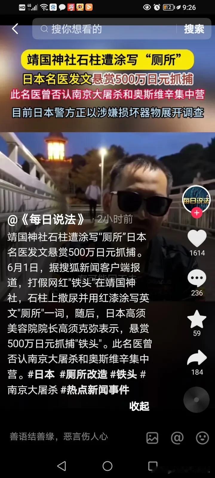 铁头确实勇,为了复出,绞尽脑汁想出这么一个办法来,惊动了全日本,全中国更甚至全世界,虽暂时赢得了掌声,但这件事令他想解封会变得更加困难,甚至是永无出头之日了,因为他这种行为从官方的角度来讲,是绝对不被倡导,更不会被允许的。 他确实是会搞流量的,但这种行为确实带开了一个不好的头,极可能会有其他网红效仿类似的方面博取流量,虽然这件事情我们看的很爽,心里也痛快,但我们还是不要做违法的事,影响国家生育的事。