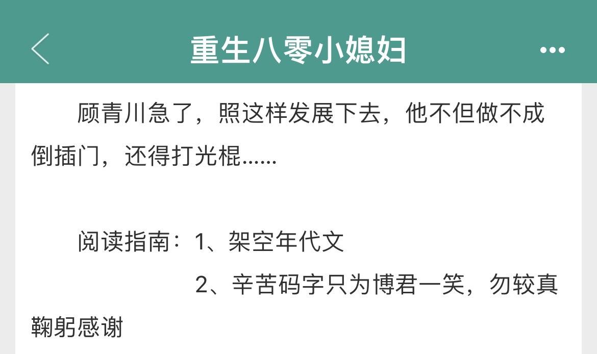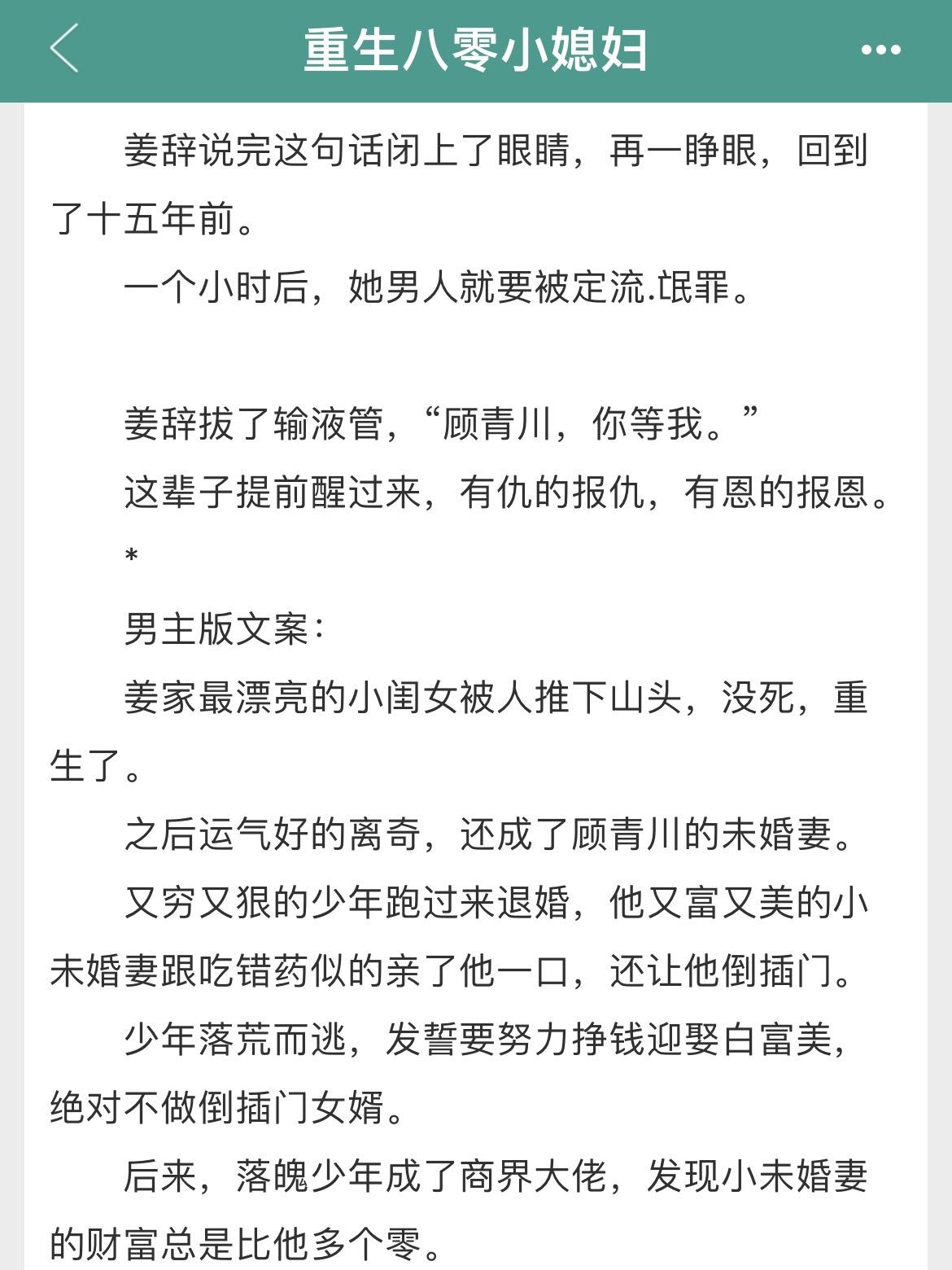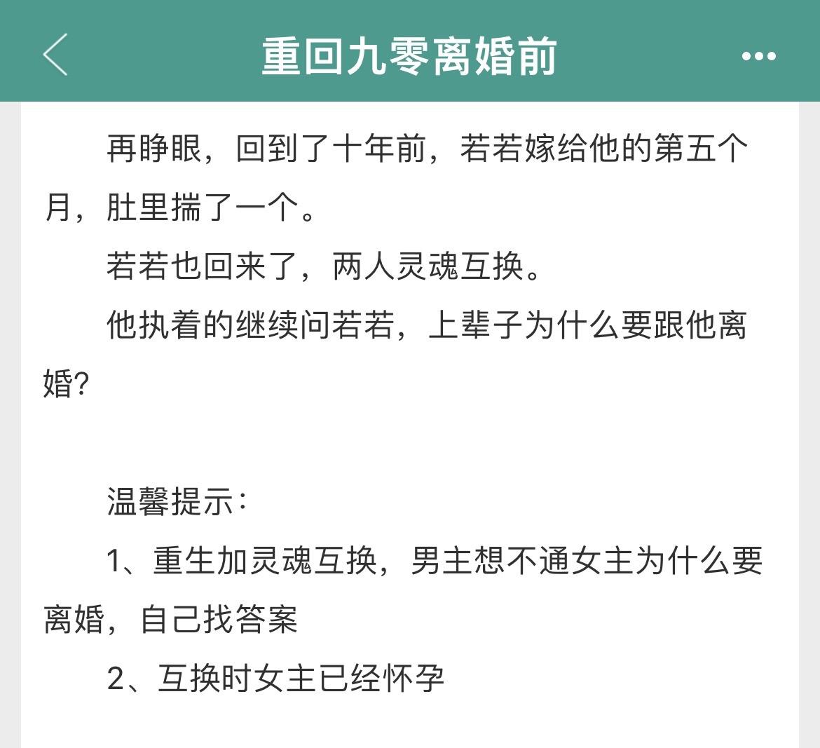 两本重生年代文!两本重生年代文! 书名: 《重生八零小媳妇》重生、打脸、爽文 《重回九零离婚前》重生、灵魂互换 作者:姜丝煮酒 标签:重生文、年代文、发家致富奔小康