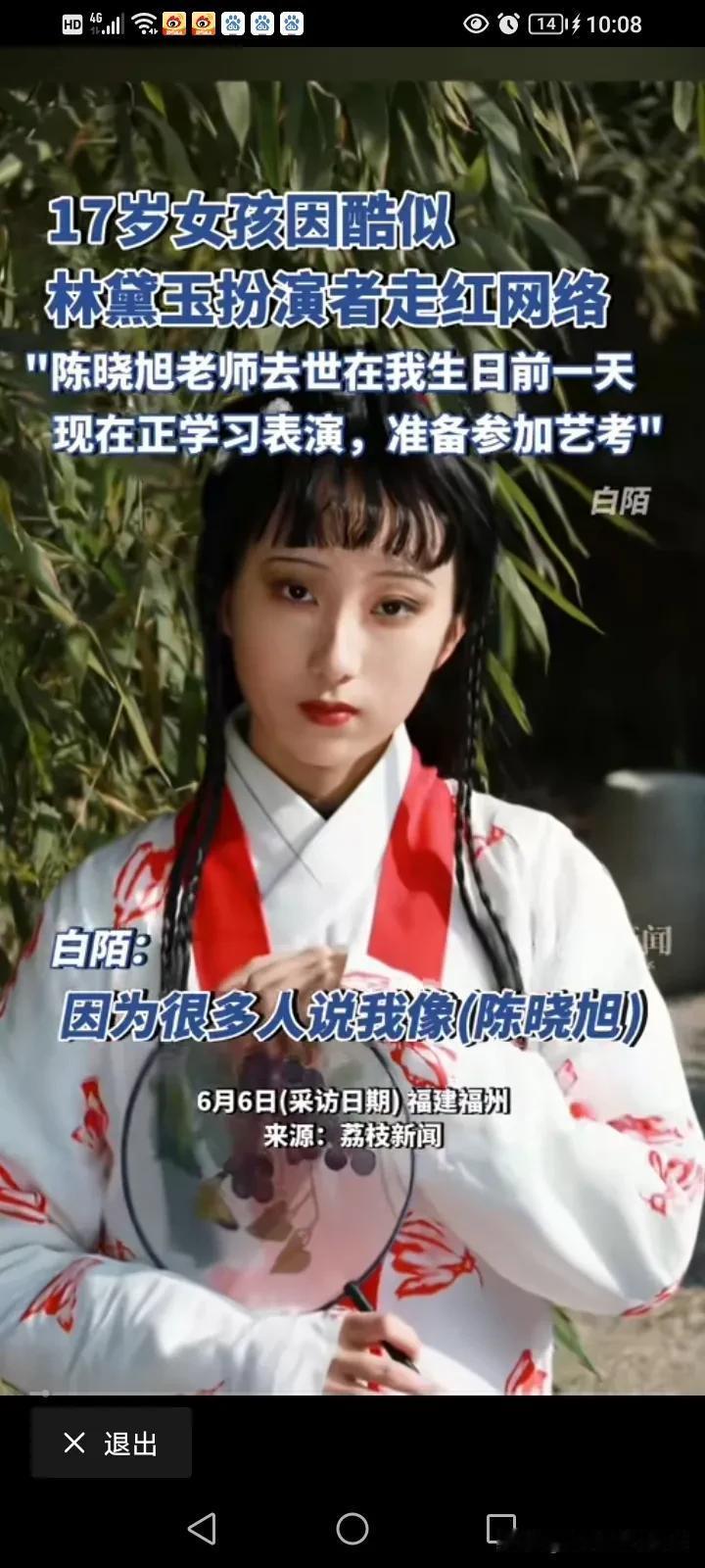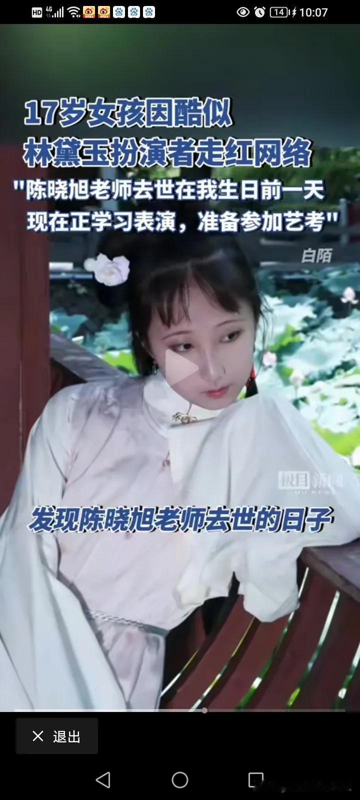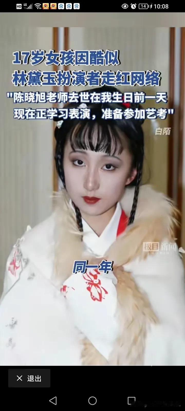 17岁女孩酷似87年陈晓旭版林黛玉的当事女生发声,称自己也觉得很巧合,因为她的生日就是陈晓旭老师去世的后一天,说实话,很多人说像,我觉得一点都不像,特别是眼睛是下三白的,一点都不灵动,而且鼻子特别的长,没有那种忧郁,纤弱,书卷气,而且这个妆容肯定是特意去画的,现在的化妆技术这么厉害,很有可能本人卸了妆之后就更不像,不过这也是cosplay而已,做自己就好!