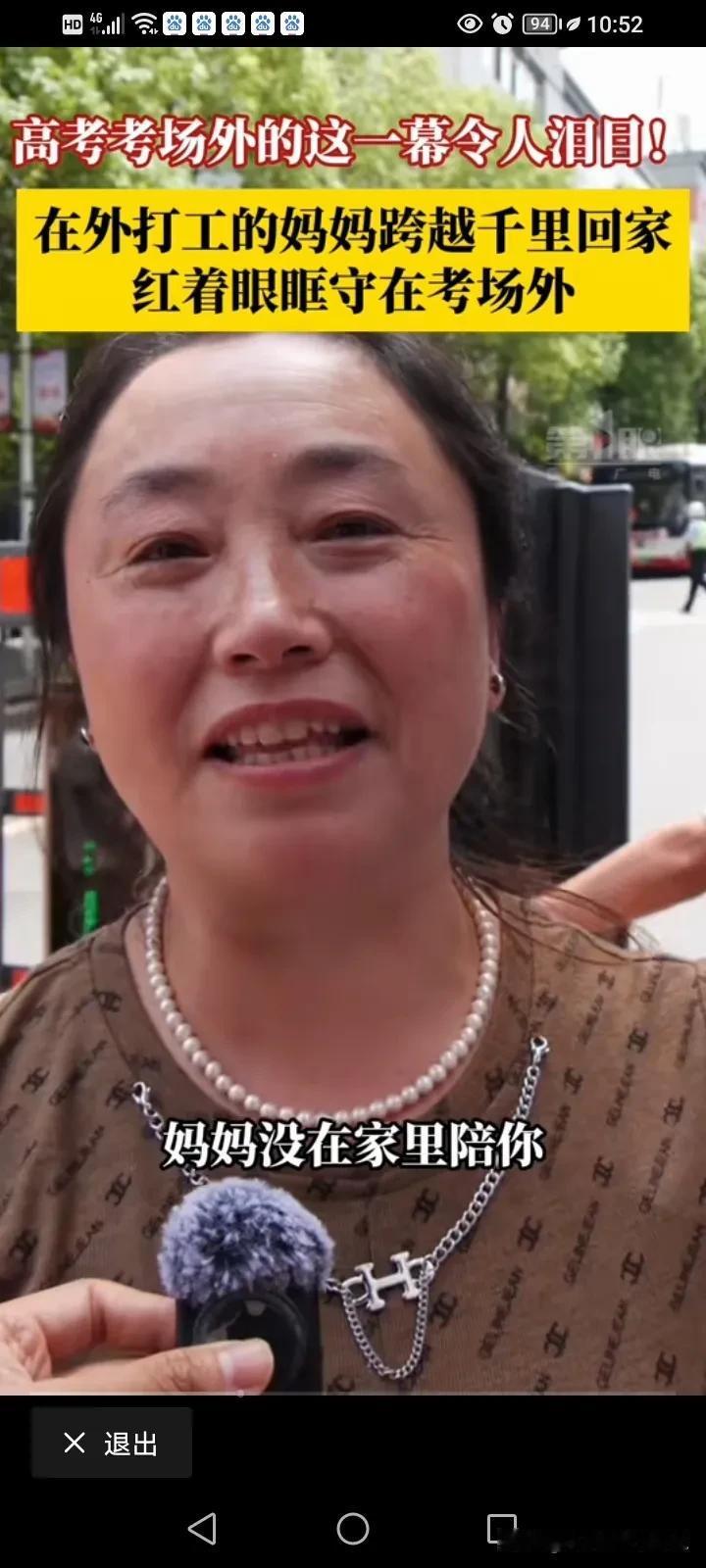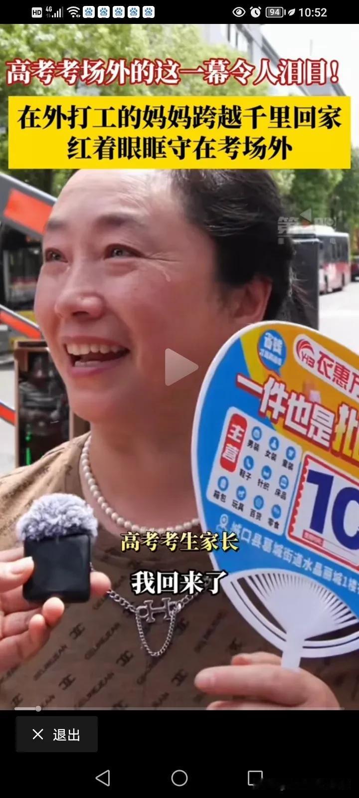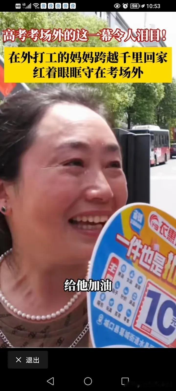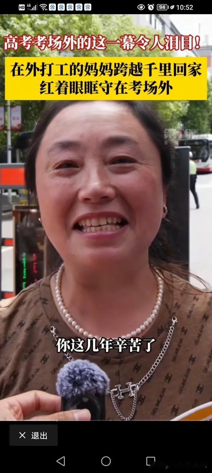妈妈流着五味杂陈的泪水,我也看哭了…… 再远也想陪你奔赴梦想……重庆的高考场外一位妈妈令人泪目,孩子的妈妈跨越了千里,从浙江赶回了重庆,就是为了陪孩子,高考! 她说回来就是想要为他加油,她镜对着镜头流泪的说:“这几年你辛苦了,妈妈从你初中就开始出外打工挣钱,都没陪着你!” 孩子的妈妈从浙江赶回来,老板都没批假,她想方设法回来的,她觉得孩子人生中的一次高考,她不能缺席,所以特意赶回来给他一个惊喜,陪他奔赴梦想。 孩子妈妈说着说着就成泪人,那复杂的泪水,看的我很心酸,我想大部分的这给咱生活的家长都是这样的吧,哪个妈妈不想陪着孩子长大,但是也要为了生计啊,我太理解这个妈妈了,孩子辛苦,你也辛苦啦!