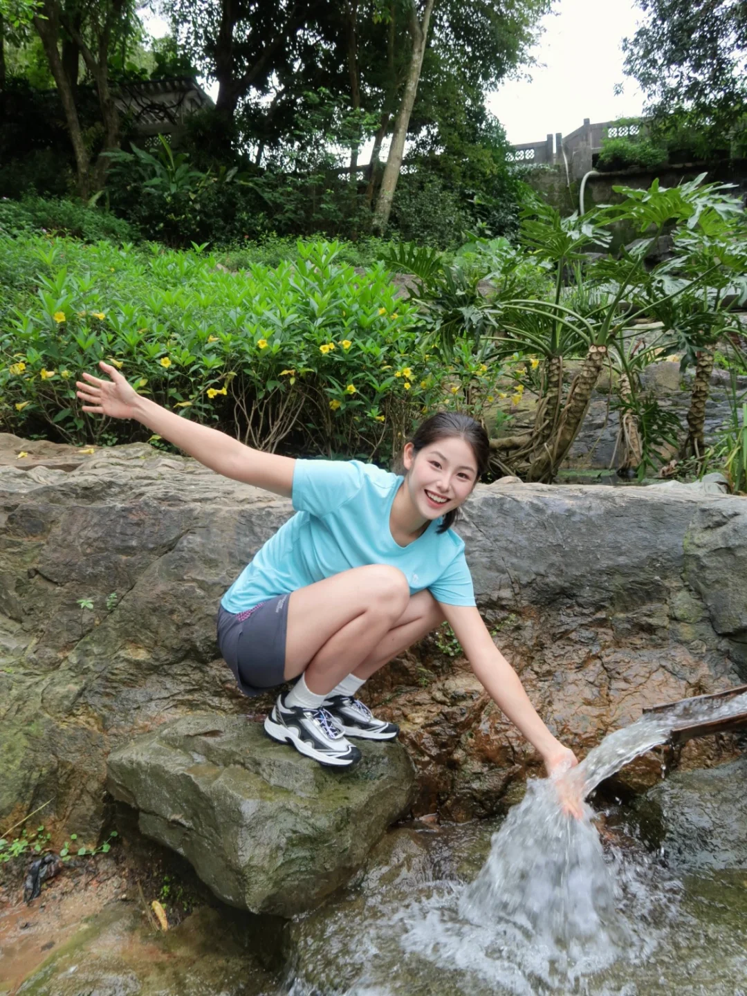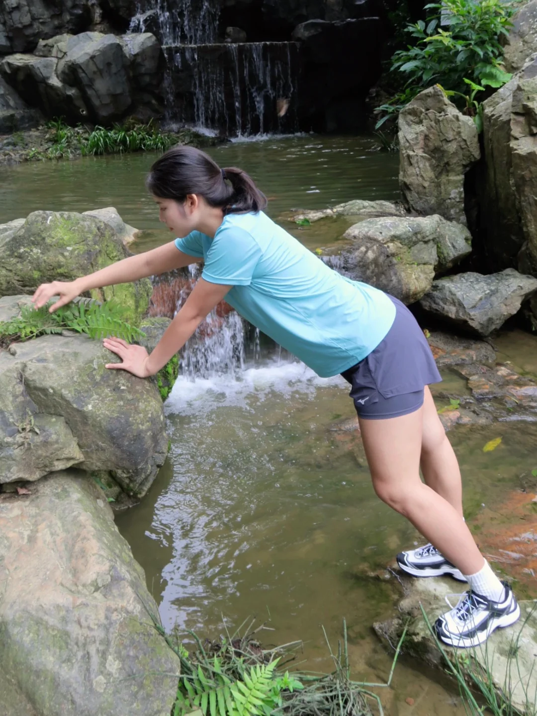 粘在脚上的泥土在小溪里面一冲就干净啦