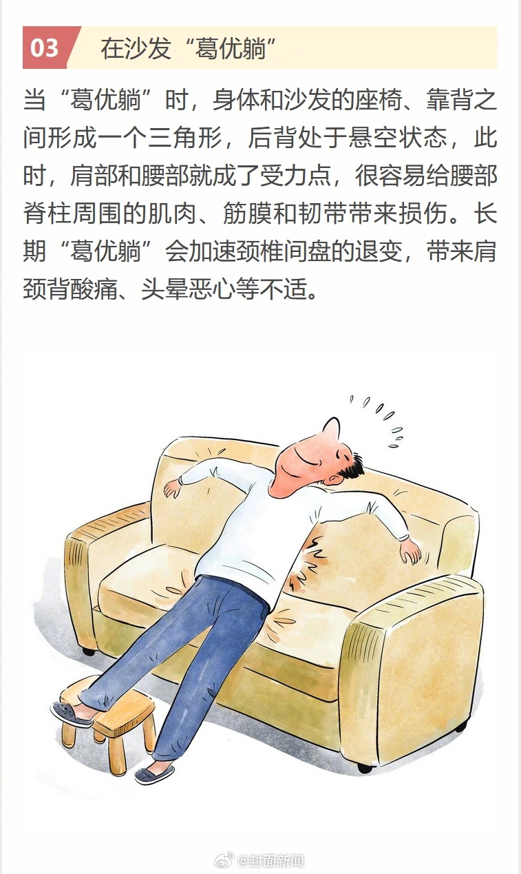 【#这9个小癖好很伤身体#】看似很舒服但有些伤身体的行为,你中招了哪几个?快来自查↓↓①饭后马上午睡;②指甲剪得光秃秃;③在沙发“葛优躺”;④关灯玩手机;⑤经常掏耳朵;⑥久坐不起;⑦经常用手指抠鼻;⑧晚睡晚起后早午饭连着吃;⑨撕嘴皮。#饭后不建议马上午睡#