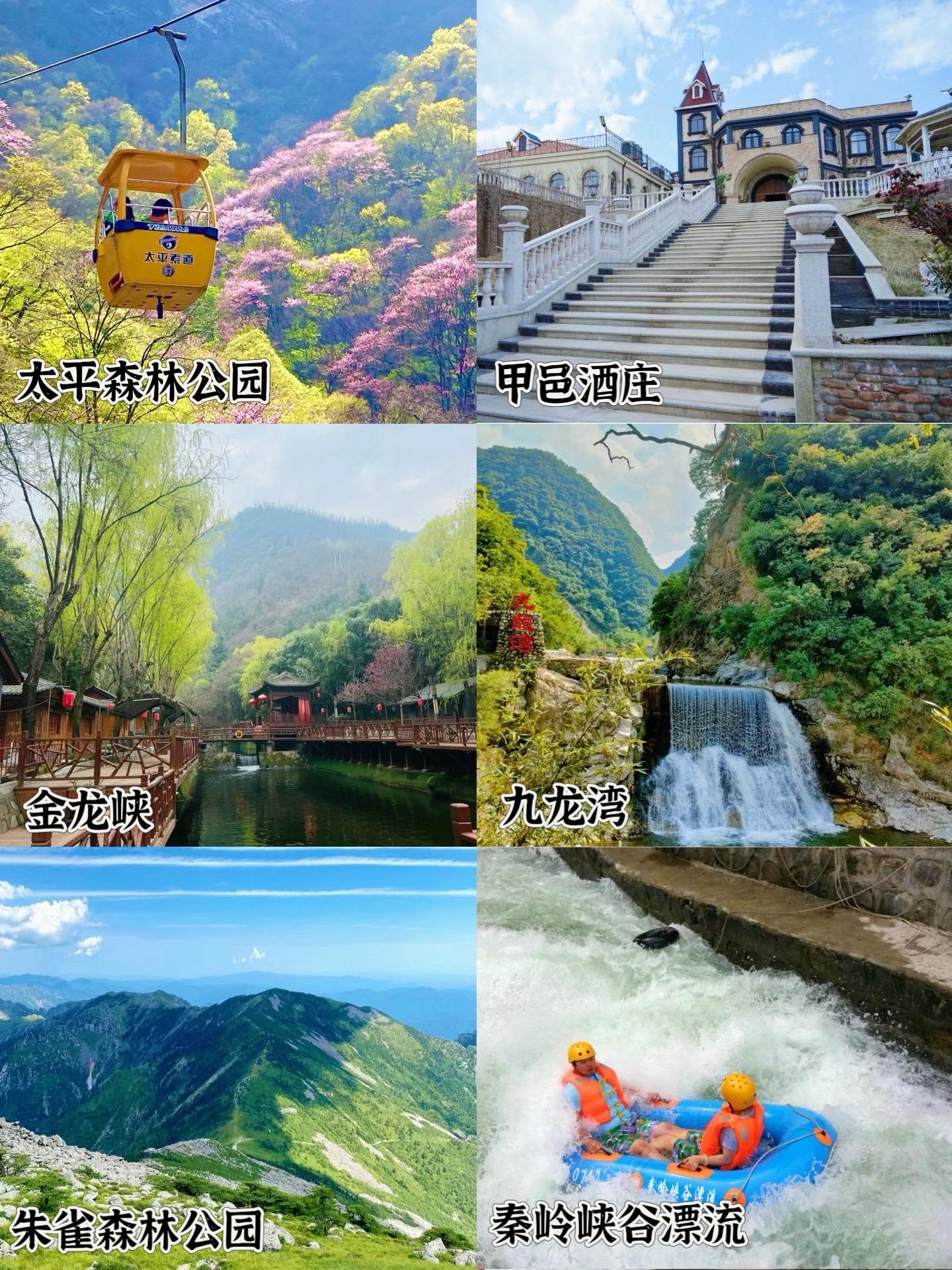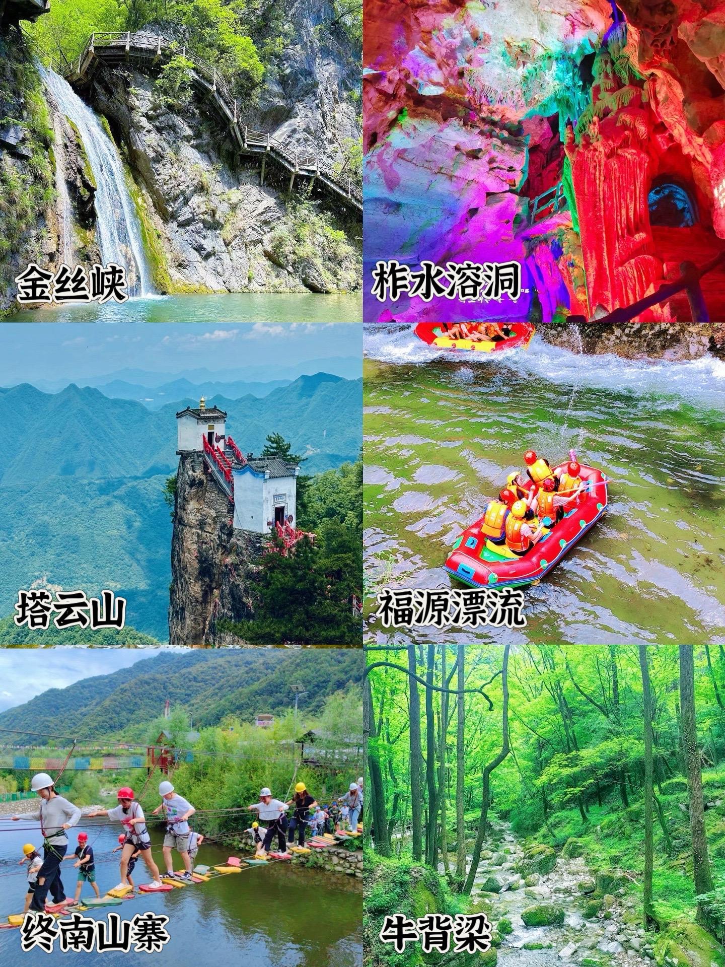 牛背梁森林公园、终南山寨、福缘漂流、塔云山、柞水溶洞