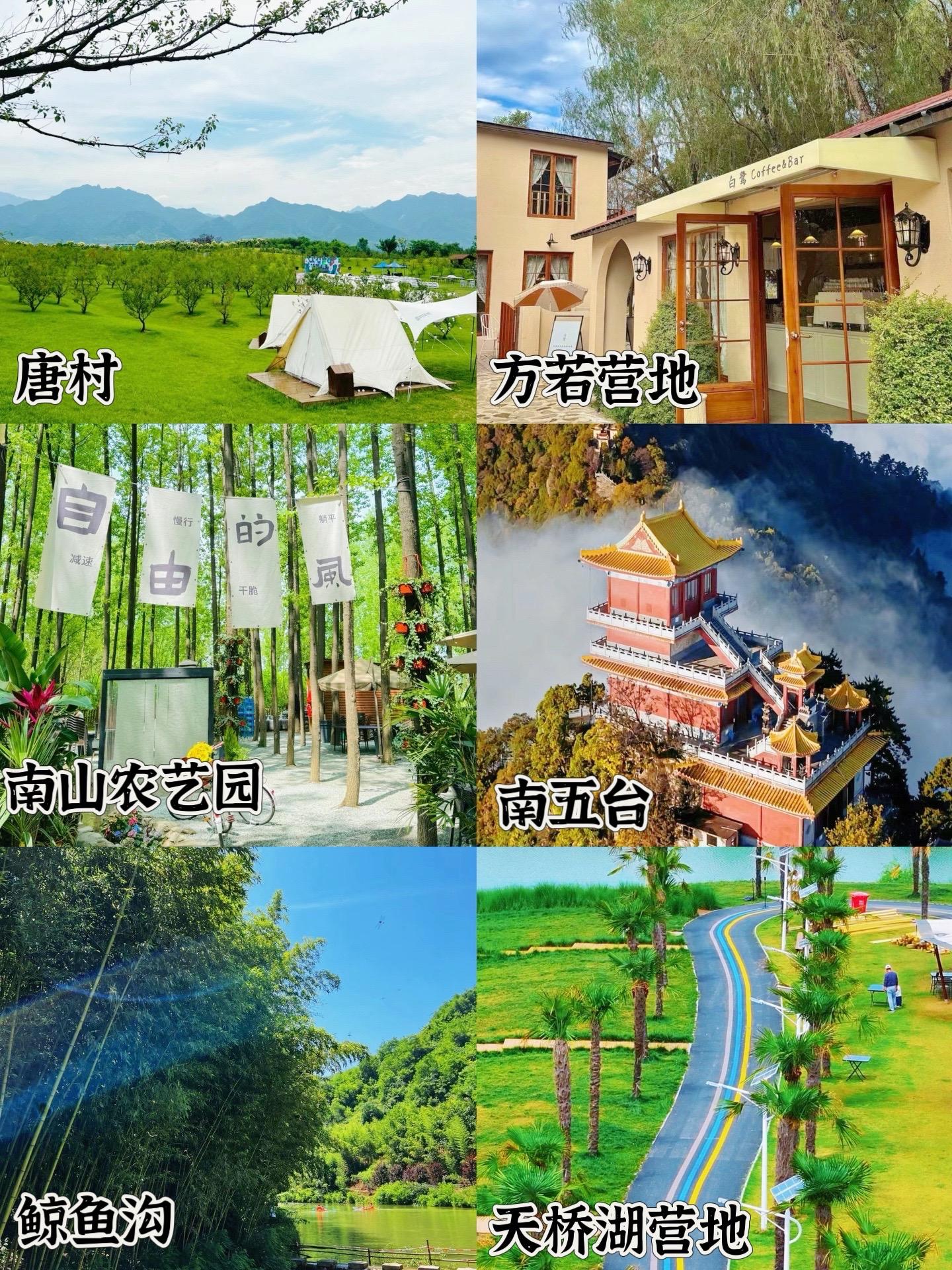 长安唐村、方若营地、南山农艺园、南五台、鲸鱼沟、天桥胡营地