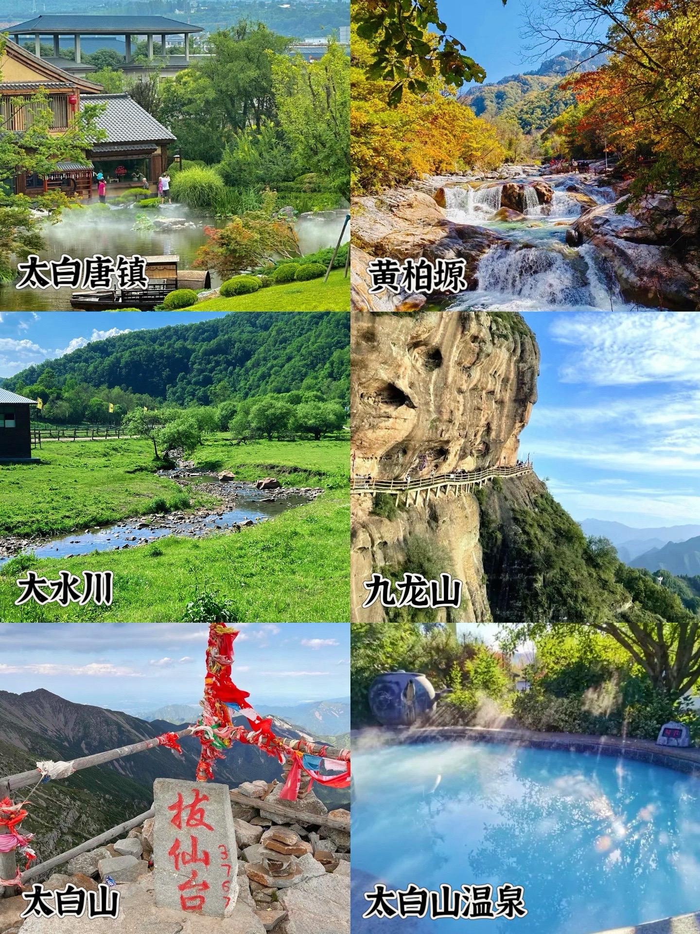 太白山温泉、关山草原、大水川高山草甸、九龙山、红河谷、黄柏塬
