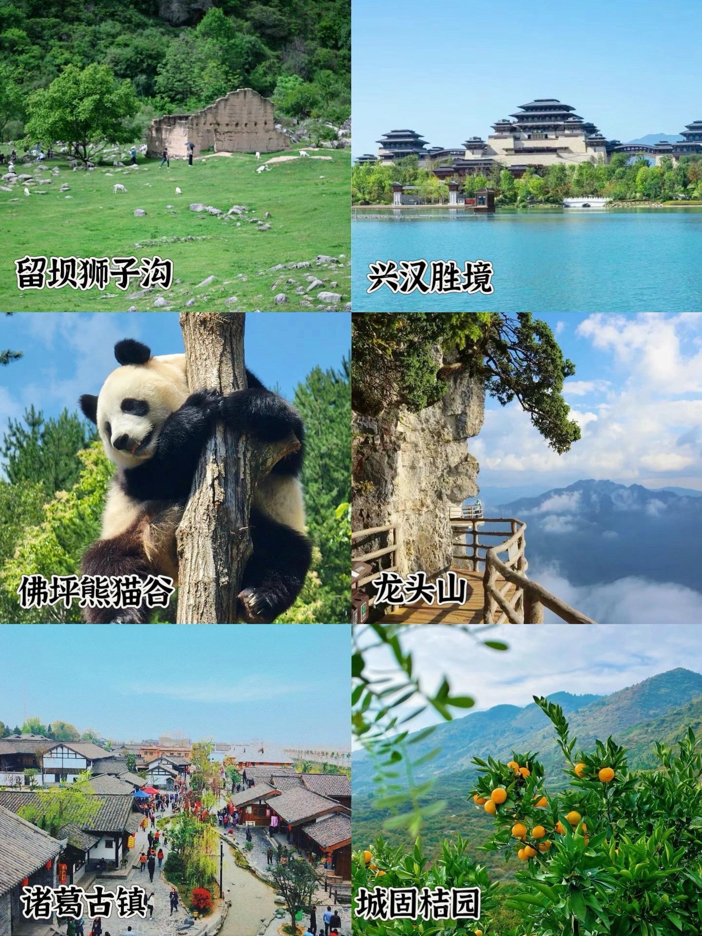 汉中留坝、紫柏山、龙头山、兴汉胜境、诸葛古镇、佛坪熊猫谷
