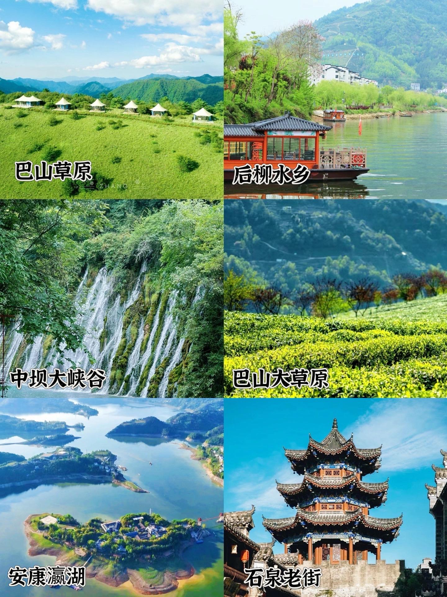 安康瀛湖、石泉老街、紫阳半亩茶园、中坝大峡谷、汉江游船