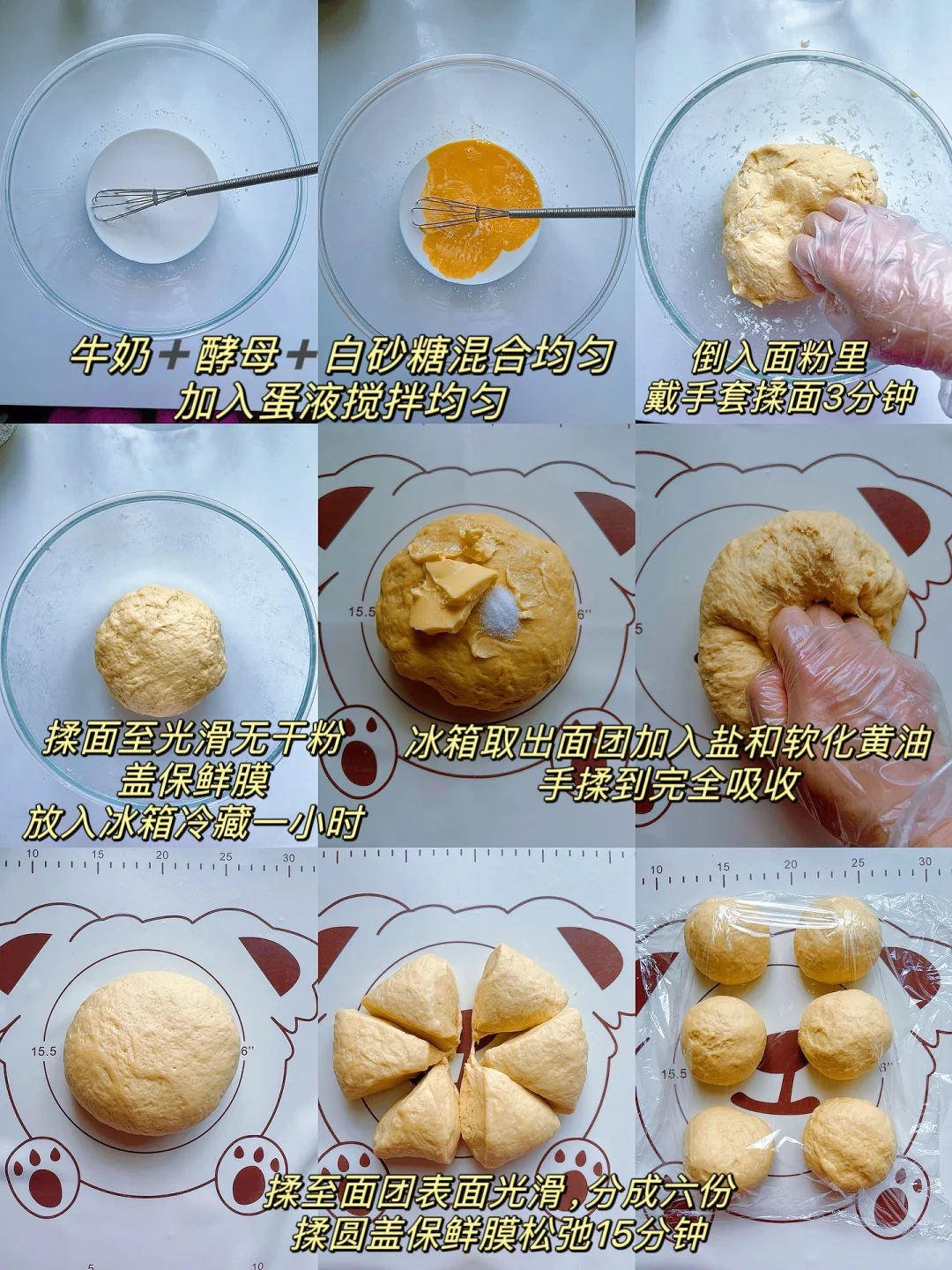 1️⃣牛奶➕酵母➕白砂糖混合均匀,加入蛋液搅拌均匀