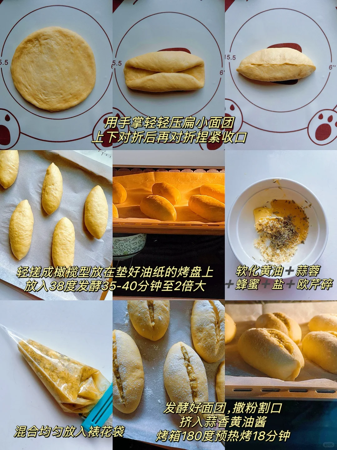 7️⃣发酵时做黄油酱:软化黄油➕蒜蓉➕蜂蜜➕盐➕欧芹碎,混合均匀放入裱花袋