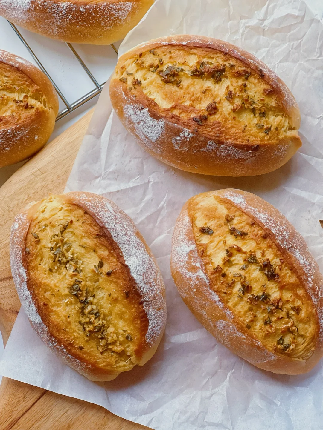 按照小姐姐的方子做了这款酱油蒜香脆皮面包