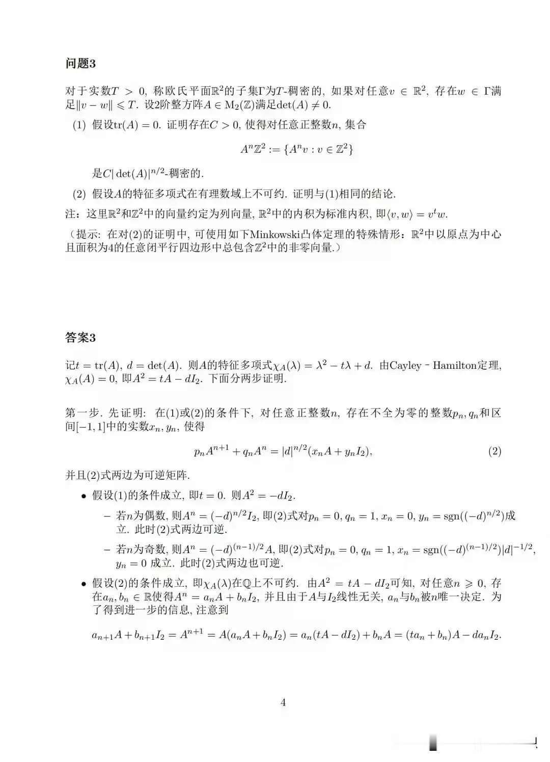 17岁中专女生拿下全球数学竞赛全球12名, 预赛的题目比去年的难,预赛试题如下,答案也给你们附在后面,满分为120分,7道题,题型包括选择题、解答题、证明题,开卷考即可以查阅资料、使用编程软件答题,但不可以与他人讨论、外传赛题及一切形式的作弊行为,48小时内交卷即可! 只要你超过45分就可以晋级了! 姜萍拿了93分,意味着最后5道大题可能做对3.5道以上才可以有这个分! 而她的数学老师王闰秋排在125名,跟姜萍差了100多名,但也进入了决赛。 看了一下这个数学题,头都晕了,如果让我抄都会抄错的那种!谁说让我答,我可能只会写解这一个字![捂脸] 你们感兴趣的赶紧做做,看看能得多少分![呲牙] 这个事情颠覆了我对数竞的认知,当我看到很多国家级奥林匹克数学竞赛的大牛,而且是全国前几名那几个人,而他们已经是硕士,博士之类的头衔,但排名远远在这女孩后面的时候,我就真的震惊了! 这女孩绝对天才了,预赛的成绩已经这么好,北大数院收走吧,对国家是一种人才培养! 这次的决赛将于6月22日0时至24时进行,但是是以闭卷形式,选手可以选择窗口期内任意连续的8小时作答即可! 在这里预祝姜萍和他的数学老师能够考出好成绩!