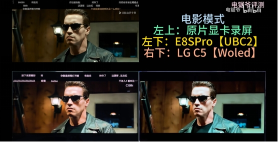 它覆盖了100% BT.2020色域,色彩纯度也接近100%,能还原出最接近大自然的真实色彩。大家都知道,色域越广画面色彩就越鲜活,从下面这张图可以看出,海信E8S Pro显示得人物肤色更红润、浓郁,整体色彩给人一种饱满而真实的感觉,更接近原片的质感。相比之下,LG C5的画面整体偏冷、偏青,尤其是在表现暖色调时,那种扎实和鲜活感不如E8S Pro来得明显。