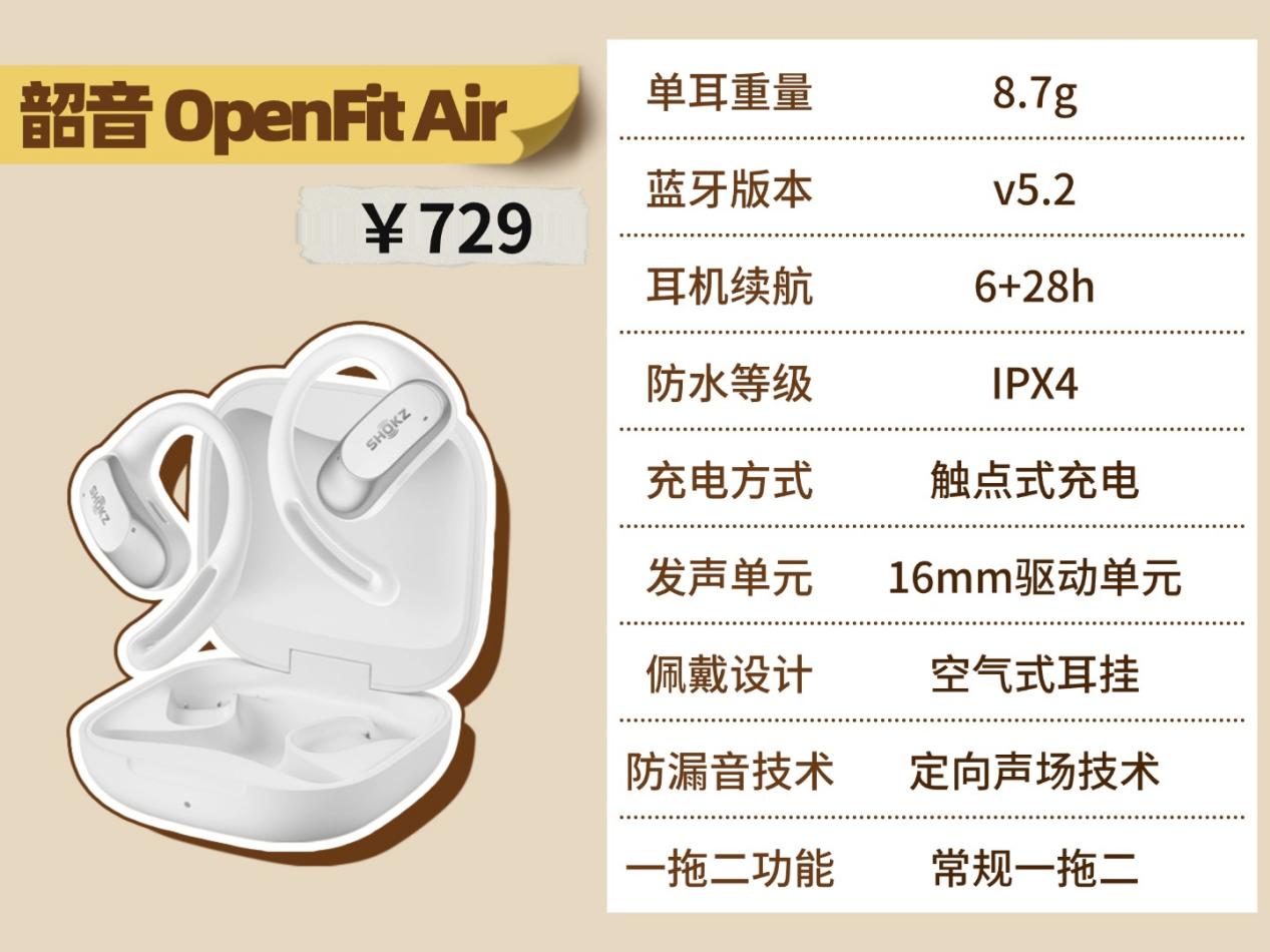 韶音 OpenFit Air:这款耳机用的是定向声场技术,靠优化发声路径来减少漏音,实际防漏音表现很扎实;而且防水能力也很在线,日常用完全不用操心。