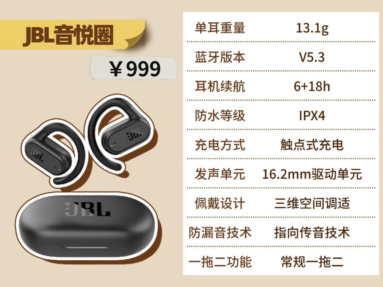 JBL音悦圈:这款耳机搭载定向传音技术,能把声音精准聚焦到耳道里,不仅细节听得清清楚楚,还顺带实现了不错的防漏音效果,一举两得。