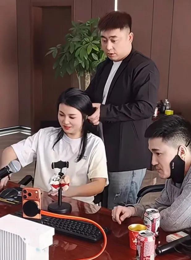 刘程与楠楠在一起直播时很亲密,一会儿贴双眼皮,一会儿扎头发,十分暧昧。