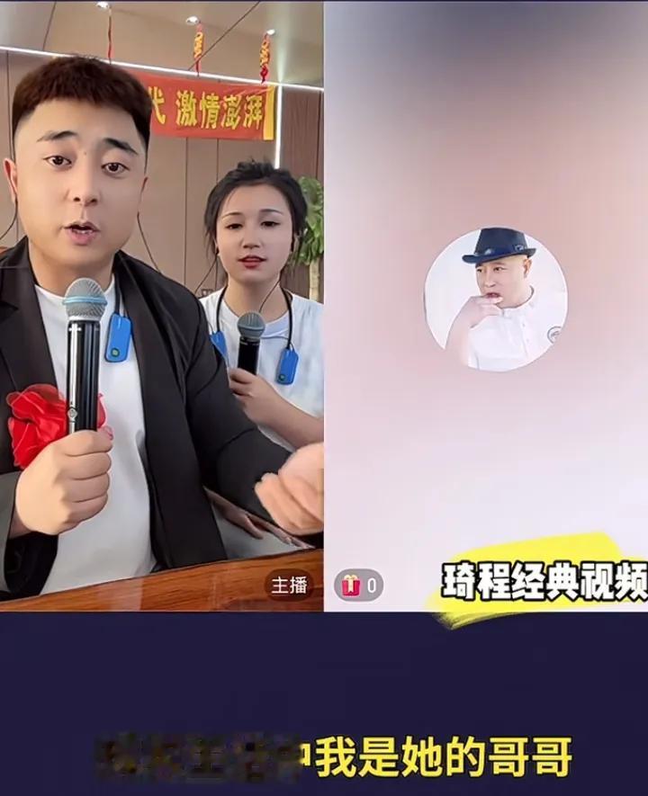 刘程胸前戴着大红花,与楠楠同台直播,赵四忽然连线,吓得刘程直哆嗦。