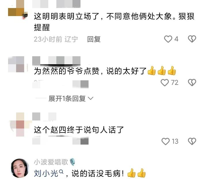 并且提到了对然然的妈妈也要好,不得不说,赵四这次很正能量。