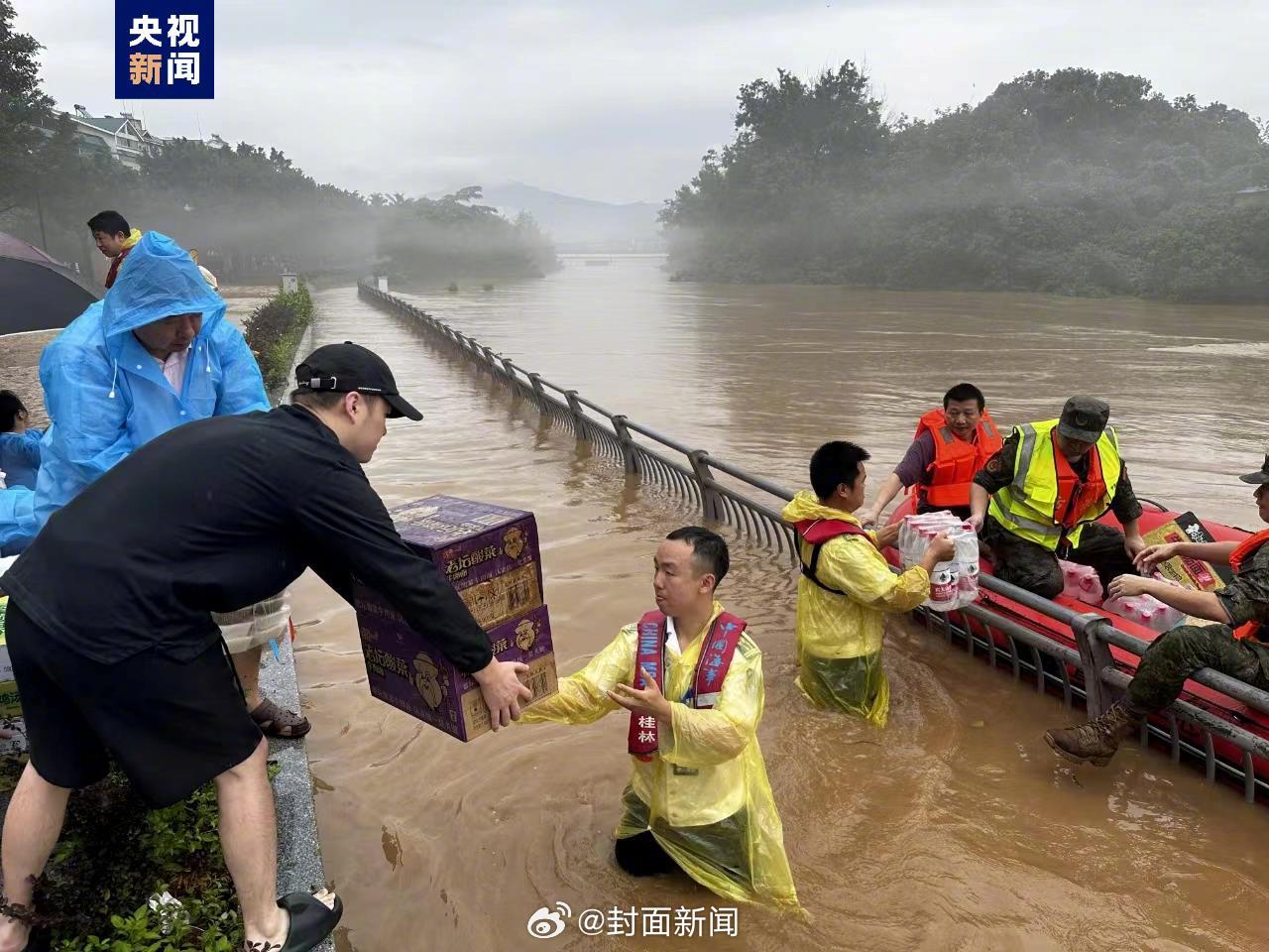 【广西#桂林遭1998年以来最大洪峰#】受持续强降雨及漓江上游水库相继泄洪影响,6月19日,广西桂林各主要河流水位迅速暴涨。根据水文气象资料显示,截至19日17时00分,桂林站水位上升到148.55米,已超过1998年漓江特大洪水148.4米,超警2.55米,为桂林1998年以来最大洪水。截至19日17时,桂林海事局共组织转移被困人员69人,目前转移救助工作仍在进行中。(央视新闻)