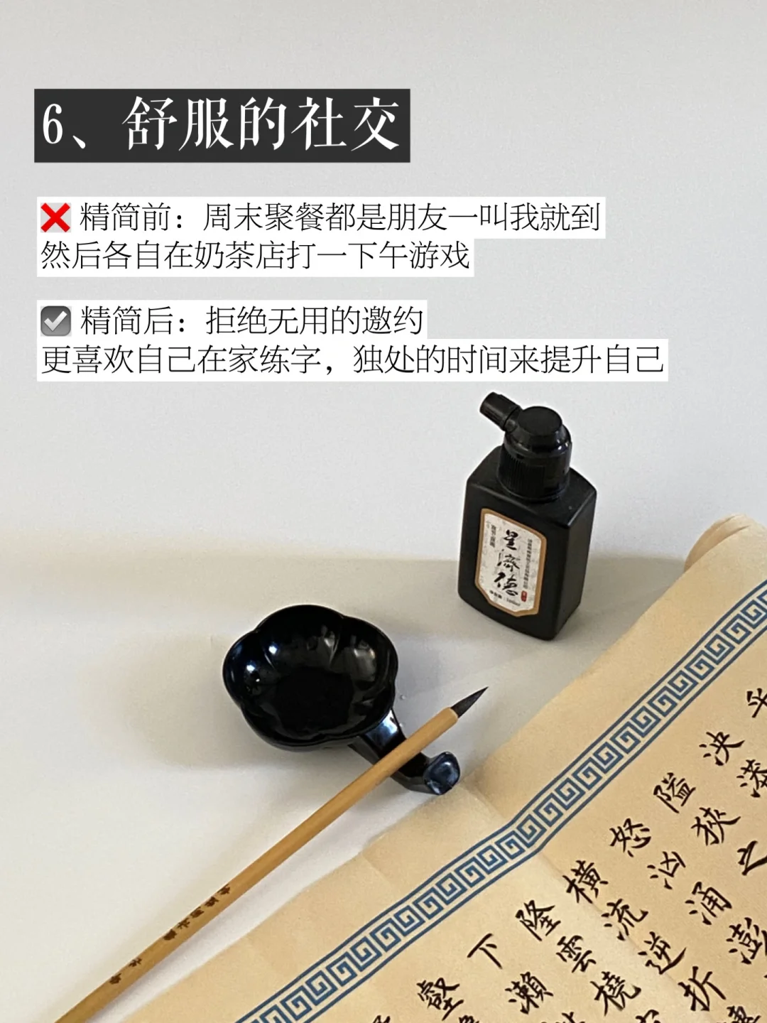拒绝无用的邀约,更喜欢自己在家练练字,独处的时间来提升自己