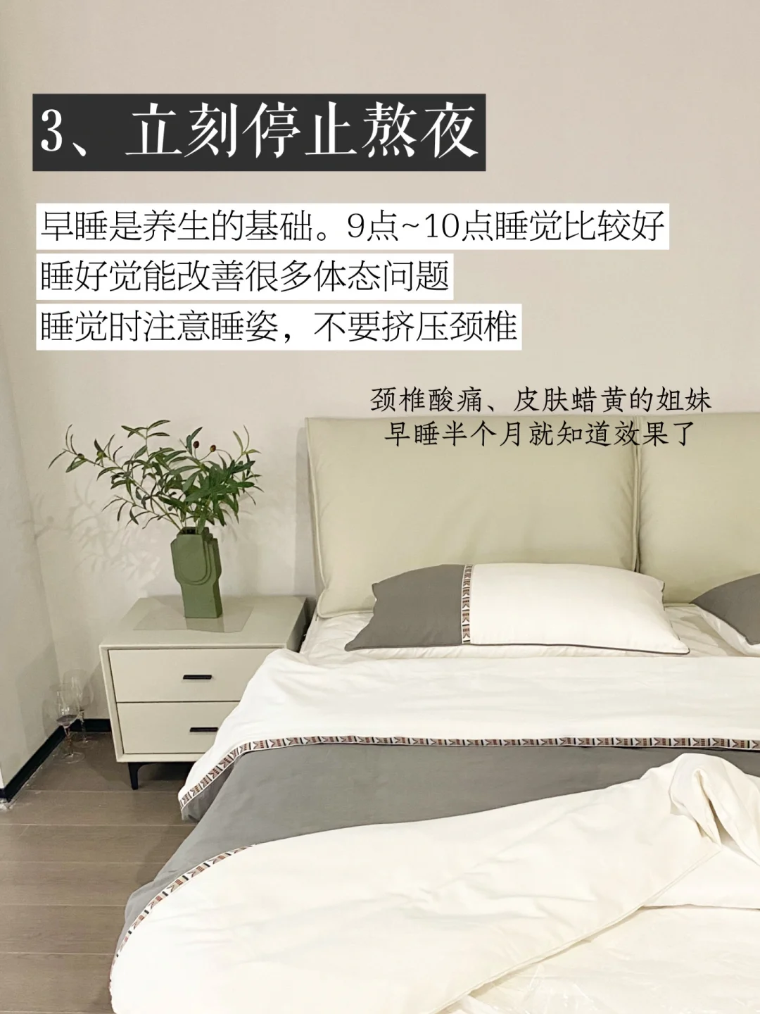 早睡是养生的基础,睡觉时注意睡眠姿势不要压到颈椎