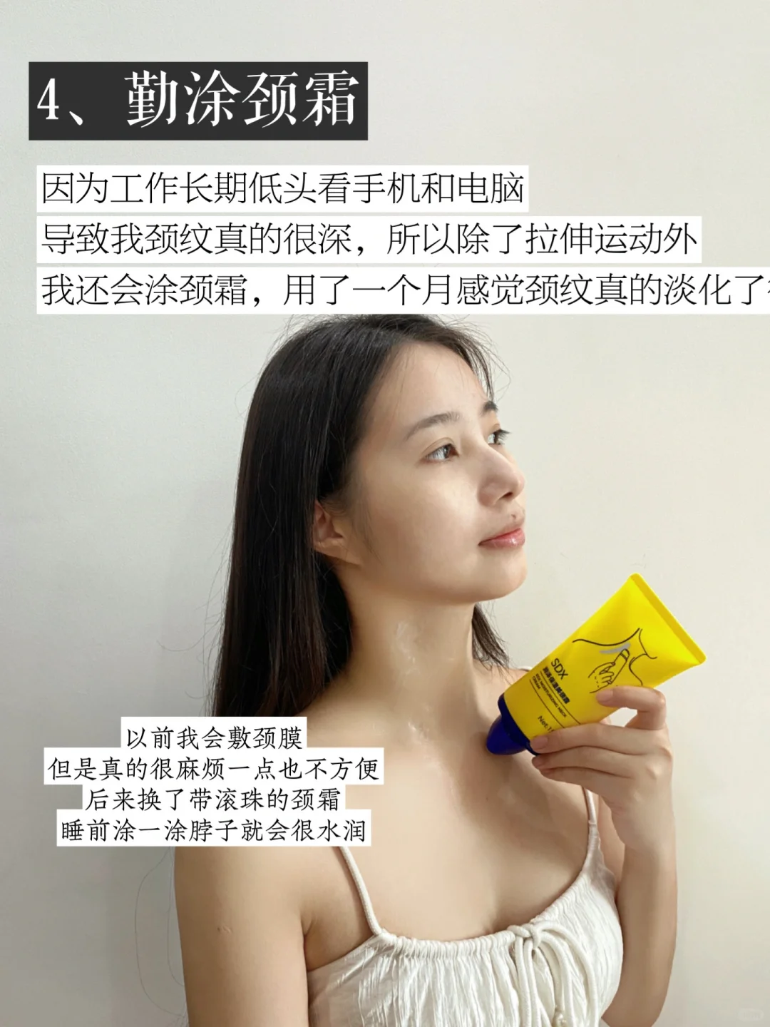 平时爱低头玩手机颈纹很深的姐妹,一定要坚持涂颈霜,可以用SDX多肽淡纹紧致美颈霜,实惠且有用!三颗按 摩滚珠还能提拉颈部肌肤,我打卡了15天颈纹肉眼可见变淡了很多