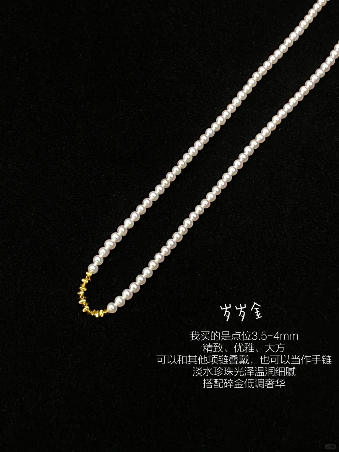 淡水珍珠光泽温润细腻,搭配碎金低调奢华