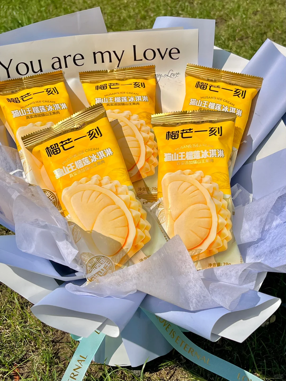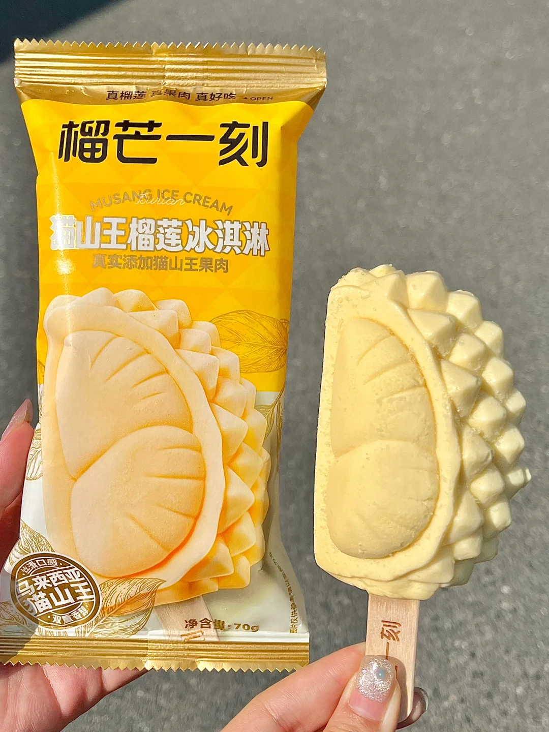 谁懂这束花的含金量啊!!!榴莲控狂喜!! 不仅造型跟榴莲一模一样!吃起来也仿佛就是在生啃榴莲好吗?!! 每根足足添加了12%的猫山王榴莲果肉! 一口下去!榴莲味巨巨巨巨浓郁! 软糯香甜!细腻丝滑 !还有浓浓的奶香味~ 冰冰凉凉的!真的好过瘾好满足!! 一口气炫了3根!!真的好好吃! 还得是榴芒一刻小子会做榴莲!榴莲控们闭眼冲!!