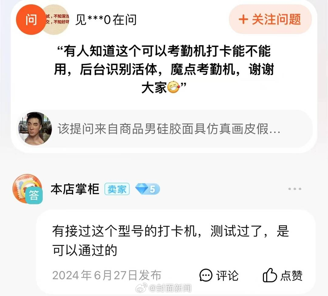 【#商家称2万元硅胶面具能过人脸识别#】#2万元可以复制你的脸吗#?近日,一张2.3万元的硅胶人脸面具能通过人脸识别,引发关注。记者在电商平台上咨询,销量较高的一家店铺店主表示,目前市面上主要有三种订制面具或者头套,面具有硅胶面具和砂岩面具。定制价格从八千八到两万三不等,顾客只需提供照片,或通过3D扫描技术获取人脸图像,商家就能制作出一张人脸面具。记者质疑是否真的能通过人脸识别系统时,商家表示,在面具拿到后,如果没有通过手机人脸识别可以直接退货。对于面具的“实际功效”,多家商家都表示肯定。