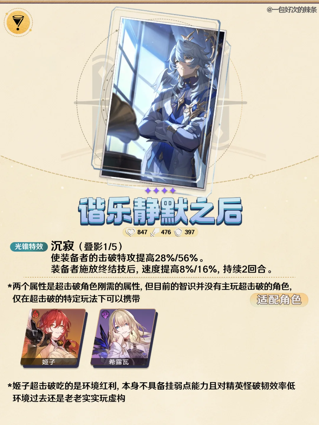 开拓者好呀,这里是一包好吃的辣条! 本篇带来的是2.3下半光锥卡池前瞻分析~ ————————————— 如有遗漏/错误欢迎指出,共同进步~ 最近新玩家/回坑玩家多,大家友善讨论哦~ —————————————
