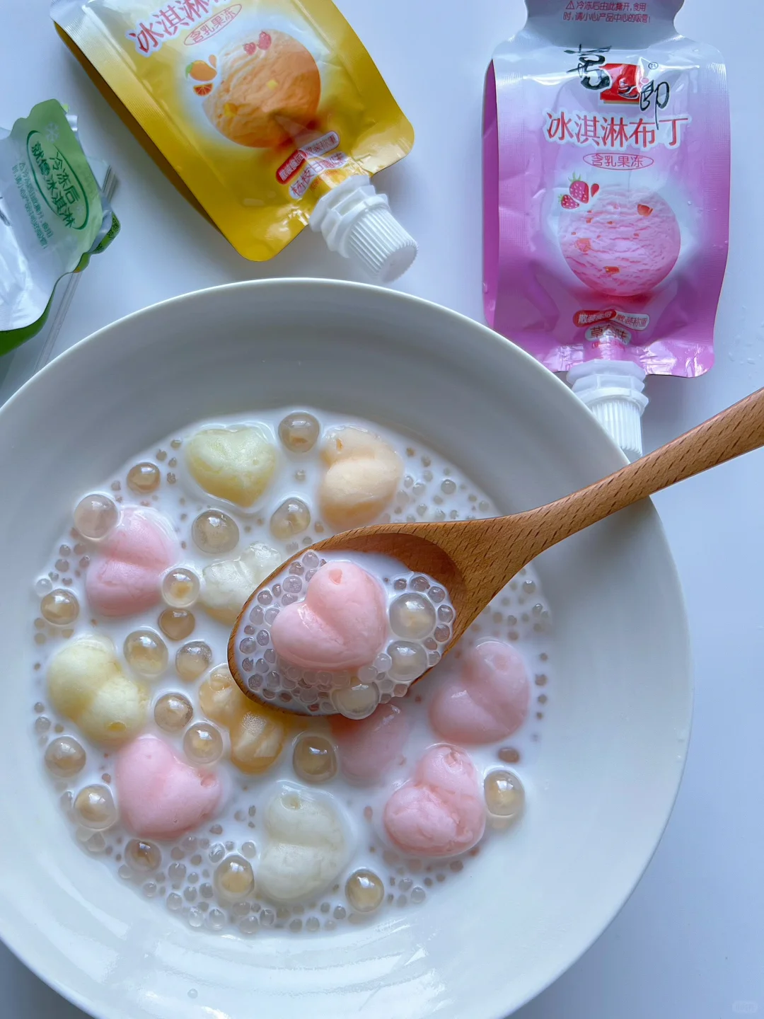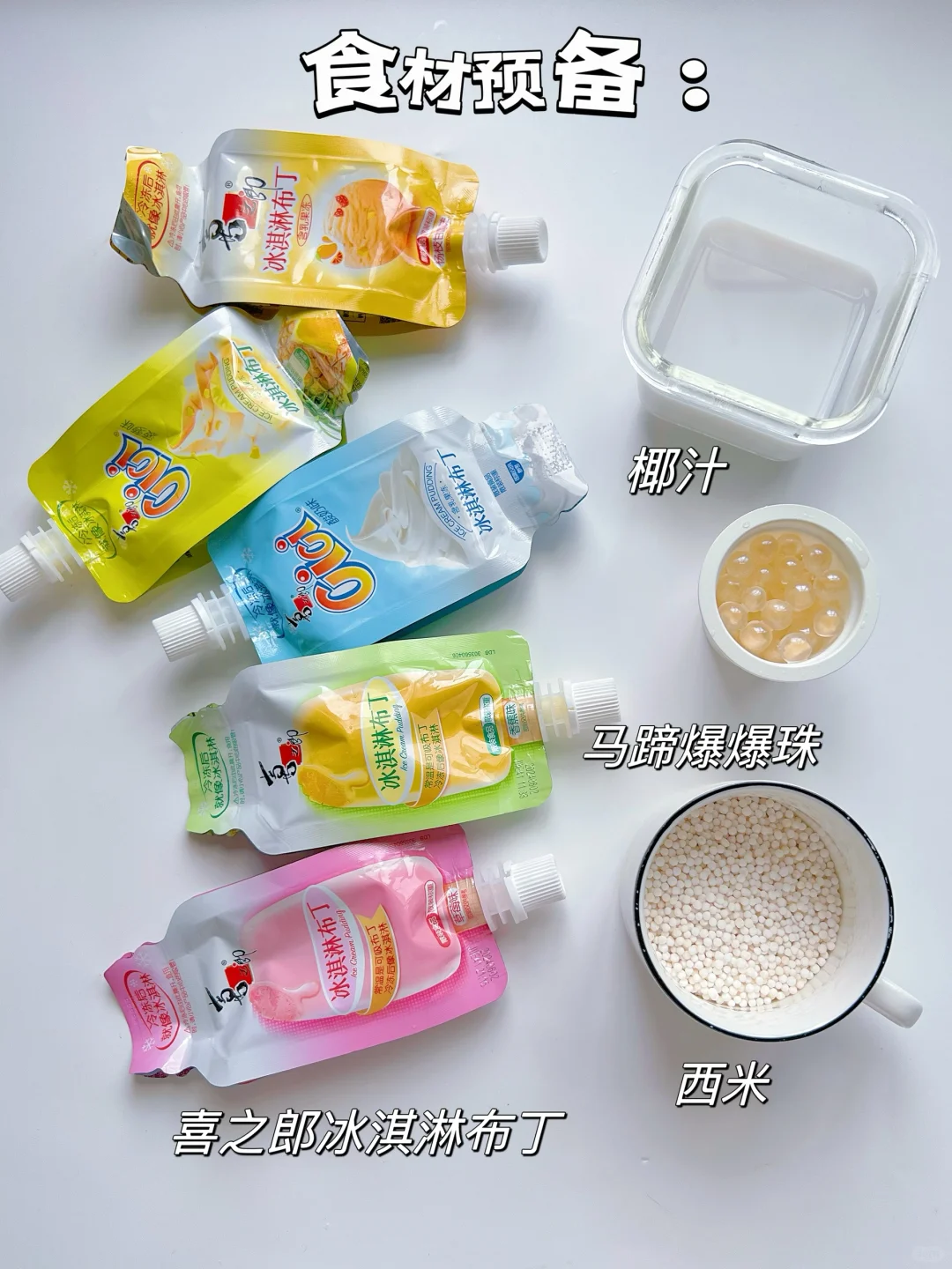 今天用国民大品牌喜之郎出品的冰淇淋布丁教大家做一个冰淇淋布丁西米露[派对R]