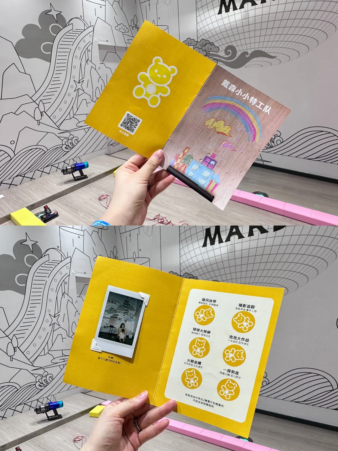每到周末最头疼🤦的就是思考双休日去哪遛娃~想偷懒在家☀又不想错过难得的亲子时光上海大大小小的亲子乐园玩过很多🥰实测下来,相我!Mini mars真的超好玩!!!完全是mini版的大人世界🌍我们去的那天刚好遇上了戴森小小特工队的特别活动门口处可以打卡盖章,还和宝宝一起拍了拍立得📷乐园里设置了很多戴森主题的游戏,边玩边体验产品看到👀一整排戴森家的吸尘器、洗地机和空气净化器,真的好像一个小小特工的装备库hhh😂我家本来就用的戴森吸尘器,吸尘/除螨/整屋清洁一键搞定!我和爸爸都0差评👍这次还体验了洗地机,地面污渍去的很干净🦠无处藏身,真的有被种草而且因为新家装修不久嘛,