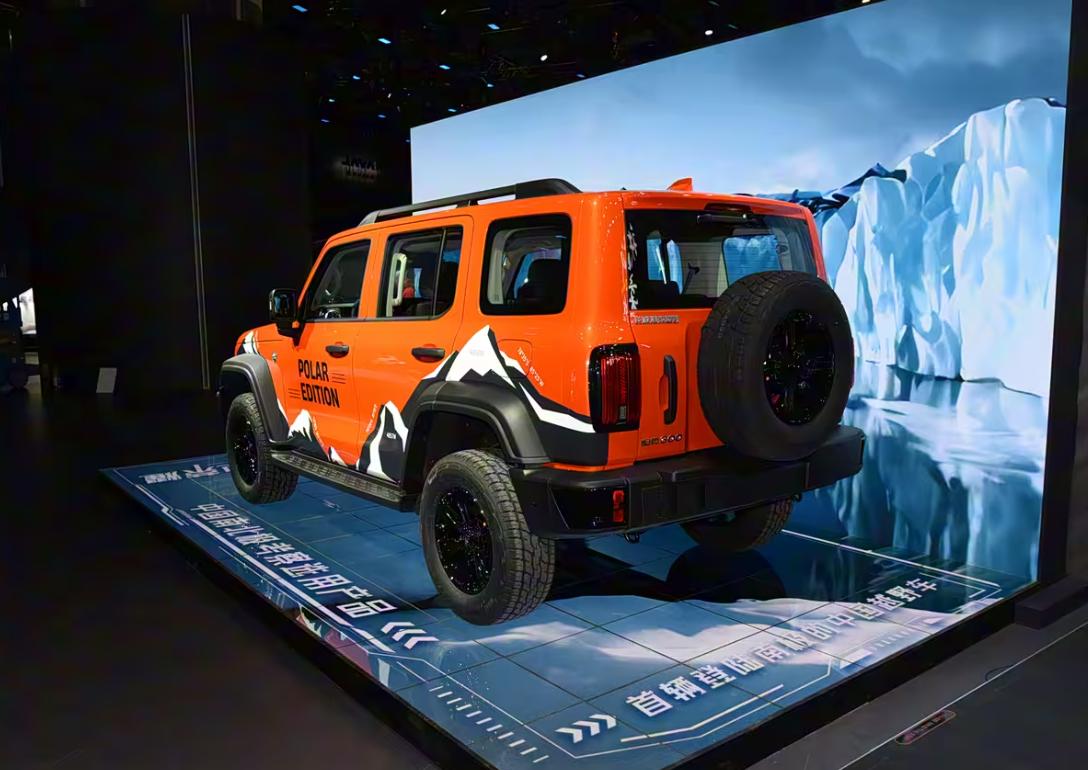 外观部分,相比普通版车型,坦克300极地版以橙色为主色调,这也是比较常见的颜色,但车身增加了“极地荣耀徽章”以及“极地锋芒”拉花,整体的辨识度和颜值还是很高的。同时,选择橙色为主色调,也是因为该颜色是国际救援的安全色。