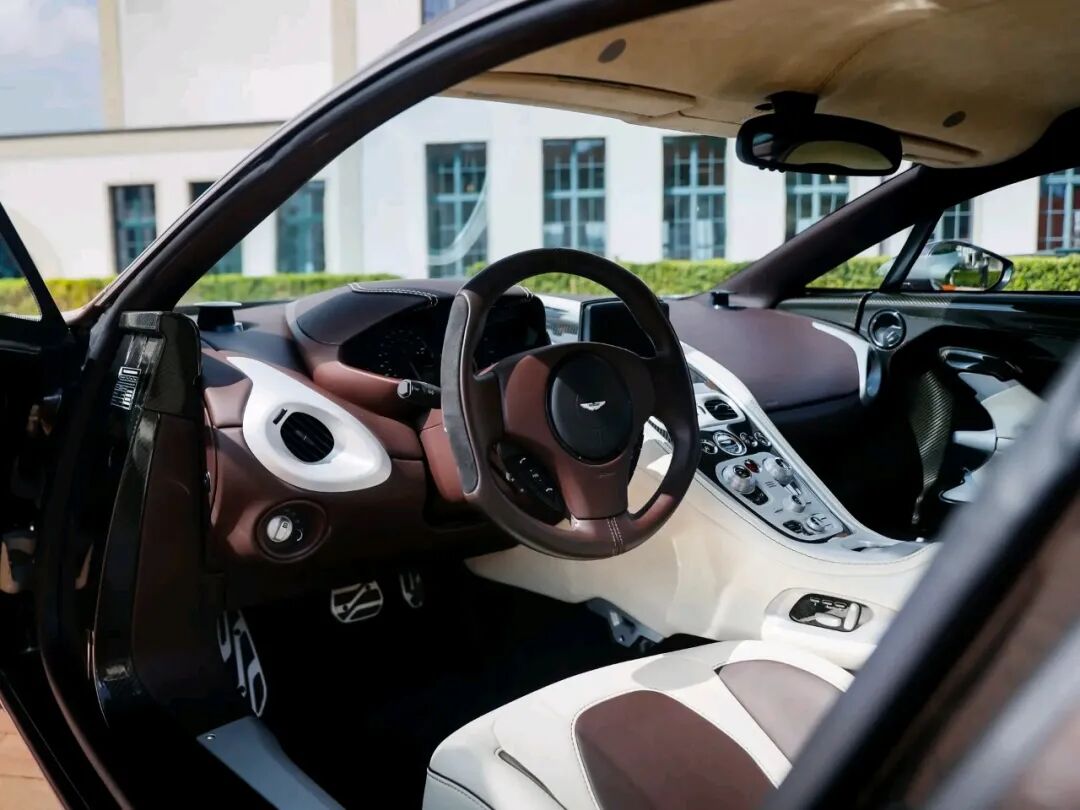 除了发动机,One-77还有很多过人之处。为了减轻重量并且提供灵敏的操控性,整个底盘均由碳纤维制成,车身面板则由锻造铝制成。