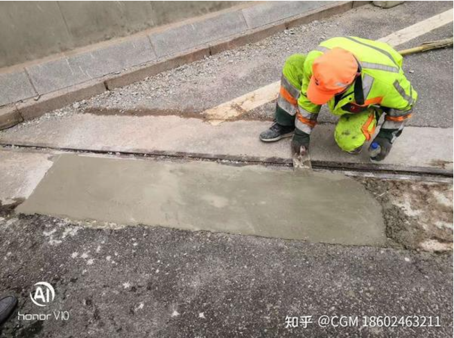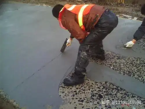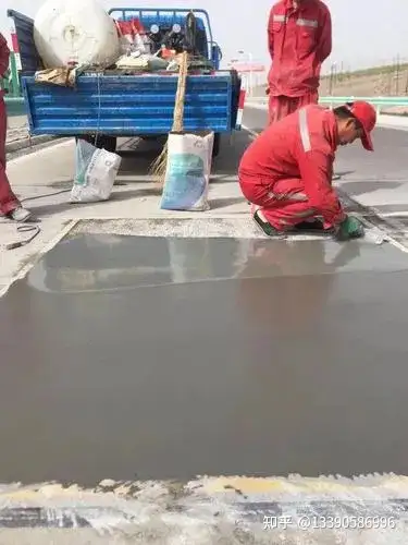 三、适用场景• 水泥路面 / 地坪:起砂、起皮、麻面、露石、微细裂缝(≤3mm)、表层剥落• 场所:市政道路、小区、停车场、厂房、仓库、加油站、机场跑道等四、标准施工流程(6 步)1. 基面处理:凿除松动层,高压水 / 风枪清灰,湿润无明水2. 界面处理:薄涂界面剂 / 水泥浆,增强粘结3. 搅拌:先加水后加料,电动搅拌 2–5min,无结块、流动度达标4. 摊铺抹平:刮尺 / 抹子找平,厚度 3–5mm,一次成型5. 养护:初凝后覆盖保湿膜,养护 3–7d6. 开放交通:按强度要求放行(轻车 4–6h,重车 24h 后)