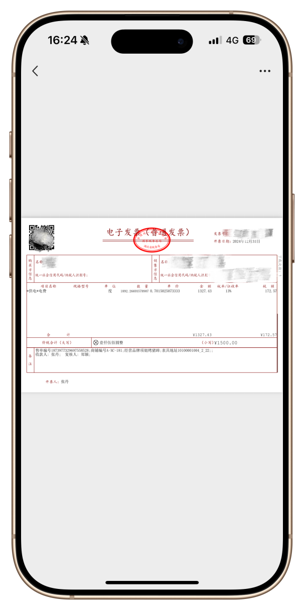 租户可通过公众号自主提交开票申请,系统自动校验并触发开票流程,显著提升开票效率与用户体验;发票开具完成后,系统通过短信或邮件自动推送给租户,支持在线查看、下载 PDF 版电子发票;已完成与百望云、票点点、诺诺开票等主流电子发票系统的集成,实现多平台无缝对接。