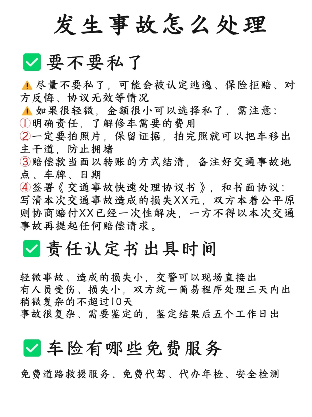 女生开车上路遇到事故千万不要慌!遇到剐蹭、事故,首先要冷静,✅我总结了交通事故处理流程,清晰易懂、简单明了,一看就懂! ➡️最后希望大家行车注意安全,永远都不要用到这份攻略‼️