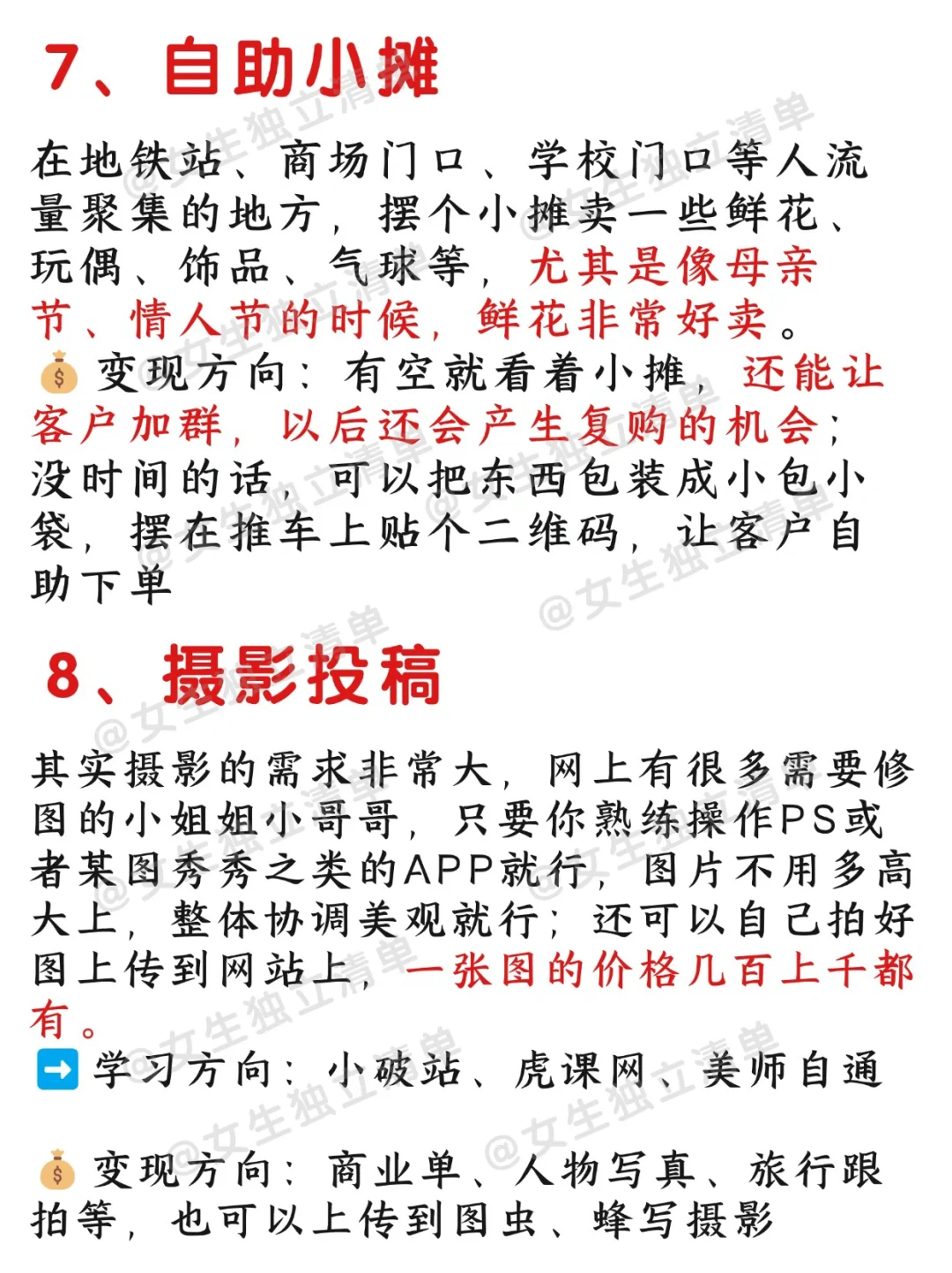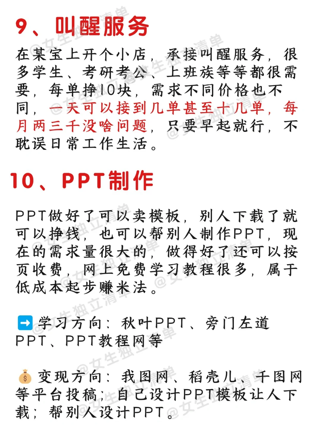 女生独立清单