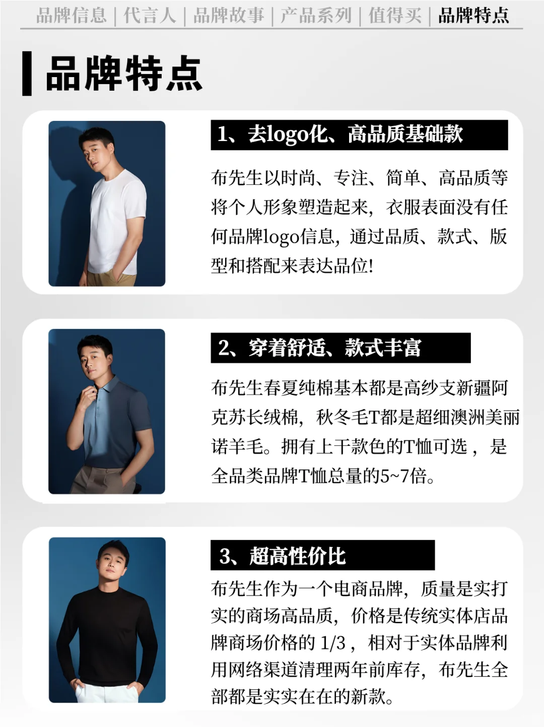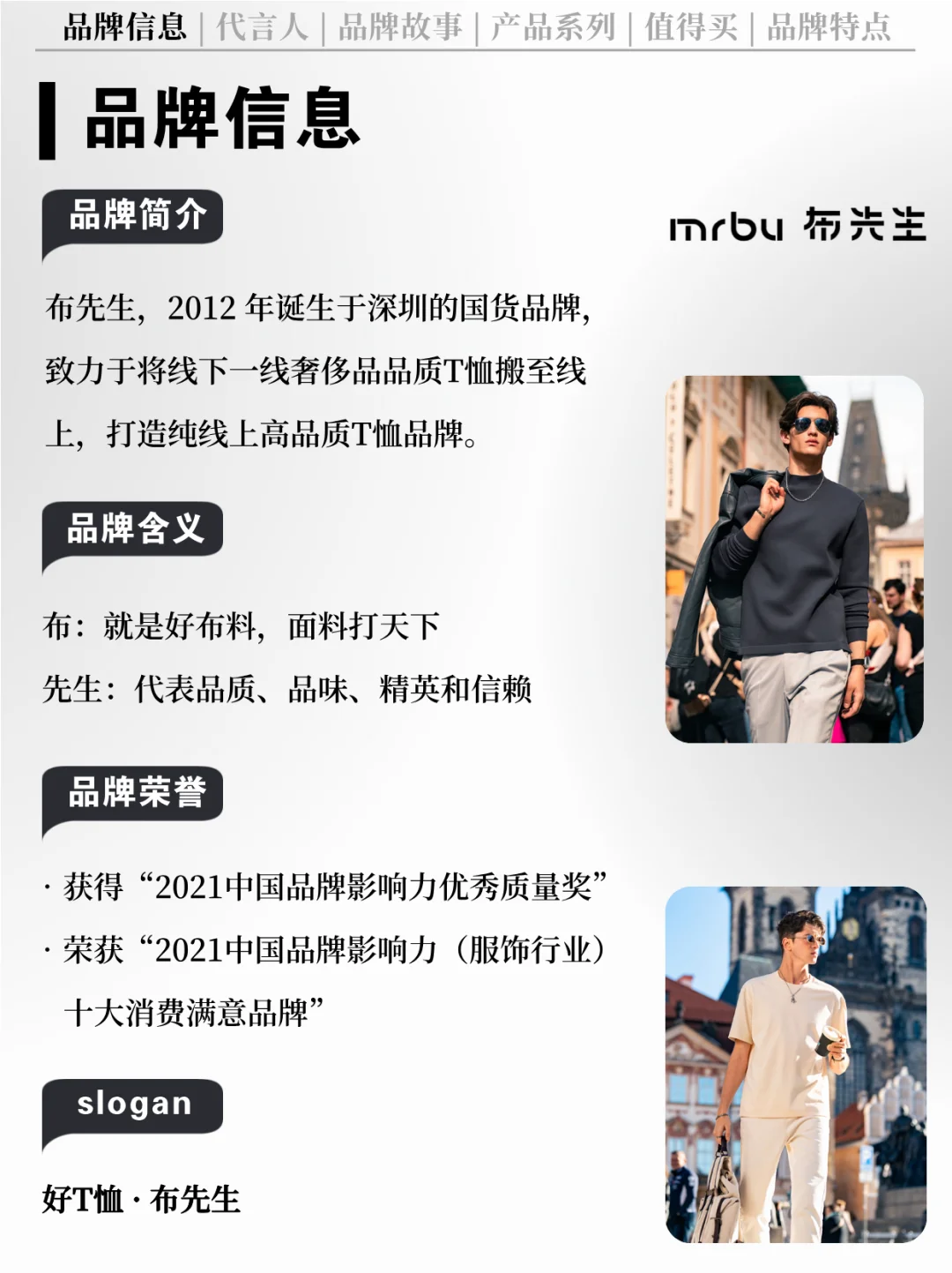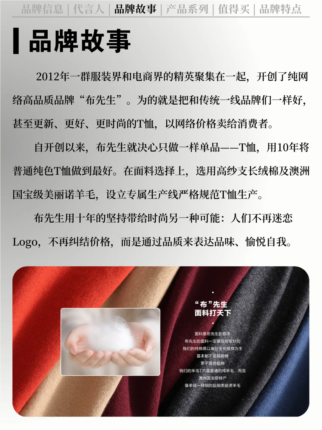 [向右R] 品牌简介:布先生,2012 年诞生于深圳的国货品牌,致力于将线下一线奢侈品品质T恤搬至线上,打造纯线上高品质T恤品牌。