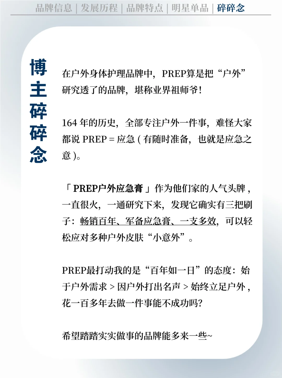 ❤️ 碎碎念:在户外身体护理品牌中,PREP算是把“户外”研究透了的品牌,堪称业界祖师爷!