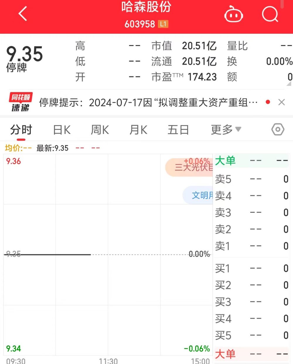 7月17日,哈森股份(603958.SH)股票处于停牌状态。就在昨晚,哈森股份发布公告称,由于拟调整重大资产重组方案,其股票将在7月17日开市起停牌,预计停牌时间不超过5个交易日。