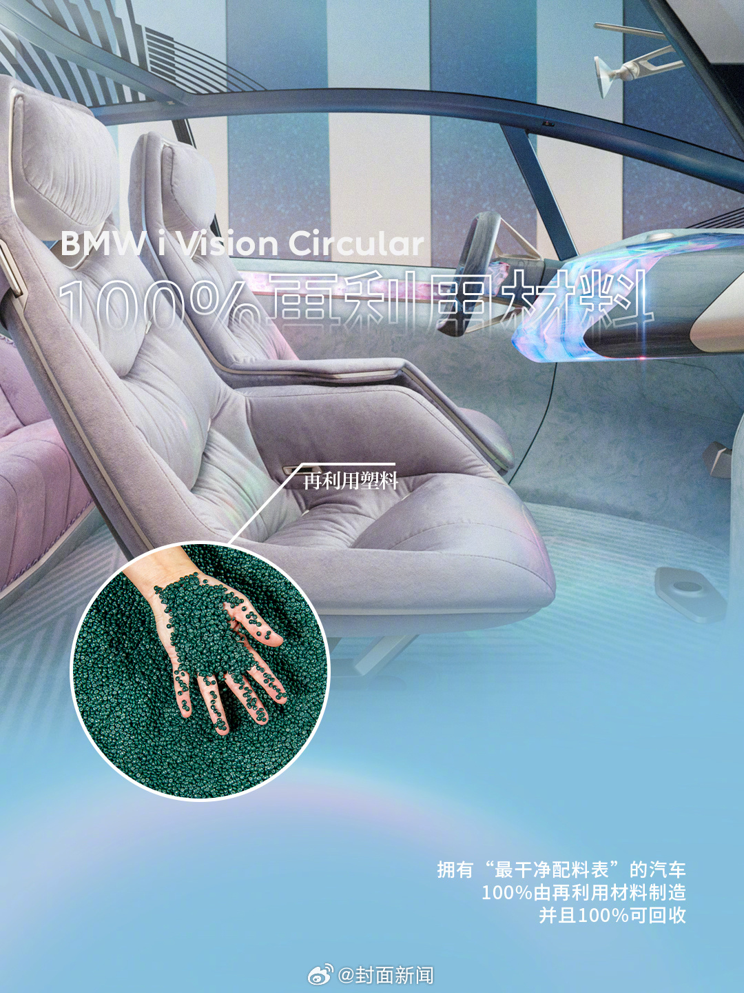 除此之外,宝马还打造了一款BMW i Vision Circular概念车,100%再利用材料做成、100%可回收,已在今年北京车展上中国首秀。这一切充分表达了在可持续发展理念引导下,宝马与自然同行、与健康共伍的态度。