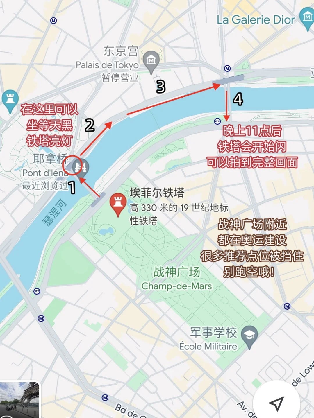 1⃣️铁塔前的桥对面,有坐着拍照的打卡点(图3)