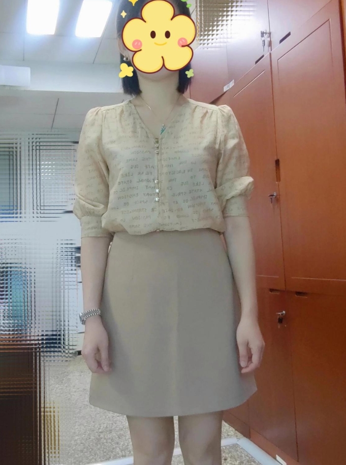 46岁,164,净重110-112斤。上衣去年实体店买的,裙子是前年淘的。今年开始不太想买短裙了,可能是年龄到了。