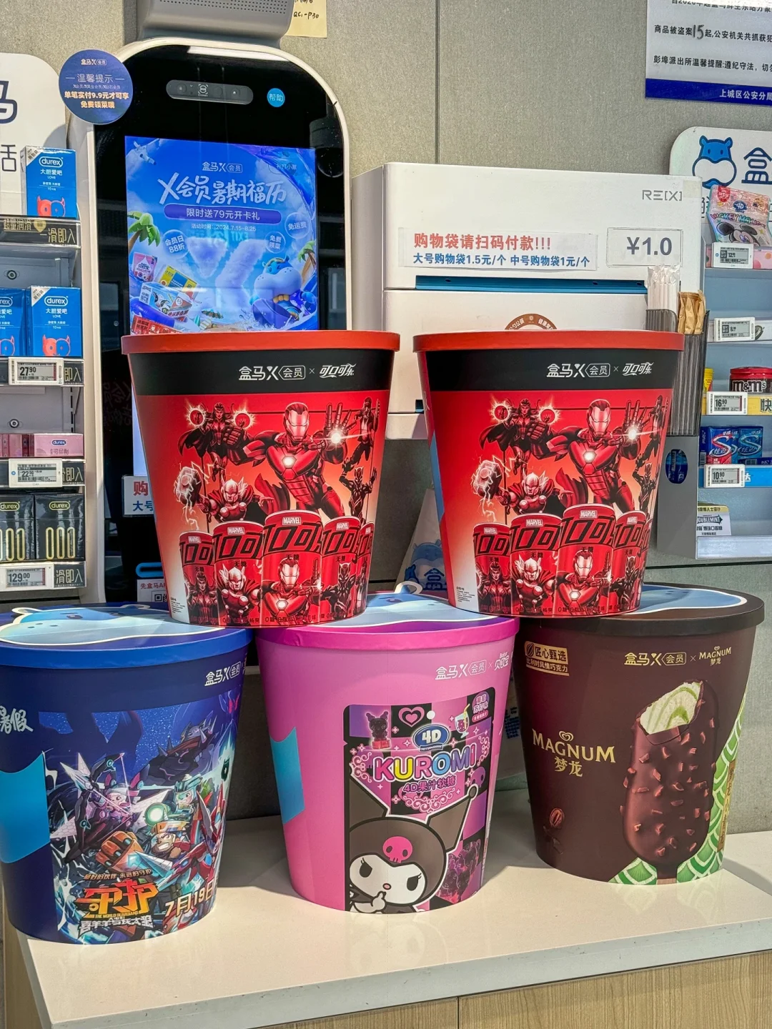 😯姐妹们!盒马的抱抱桶回归了!!! 我一定要把这个库洛米零食桶送给我的好姐妹!! 👾库洛米抱抱桶真的太可爱啦!!! 装上满满一桶零食和饮料~🍿 😎就是装满了夏日快乐啊!!! ⏰7.20开始!!!领完为止!!!👍 姐妹们快到家附近盒马把抱抱桶搬回家!! . 一起来看看我的库洛米抱抱桶里有什么!! 🍦迷你梦龙冰淇淋!!适合夏天的小雪糕~ 还有三得利乌龙茶和漫威版的可口可乐! 😋无糖的真的很适合炎炎夏日!吨吨吨! 还可以装上超多各式各样的膨化小食!!! 夏天真的是个逛超市的好季节!!!🛒 .